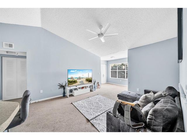 Beautiful 1 Bed 1 Bath condo with a open living-dining area with a bonus space for a small den or Office. Ceiling fans, central A/C, a spacious bathroom, and a walk-in closet. Washer and dryer are conveniently inside the apartment. Located in a peaceful spot, away from the parking lot. Enjoy all amenities including pools, a gym, and tennis courts. Located minutes from Palm Beach International Airport, Keiser University, Village Commons Shopping Center, Beach, CityPlace, restaurants, and more!