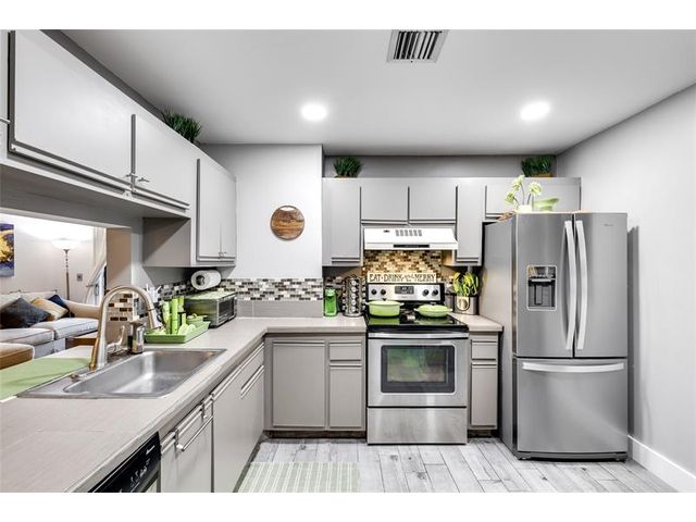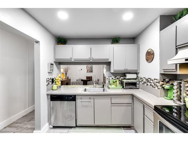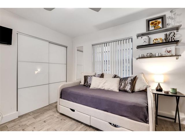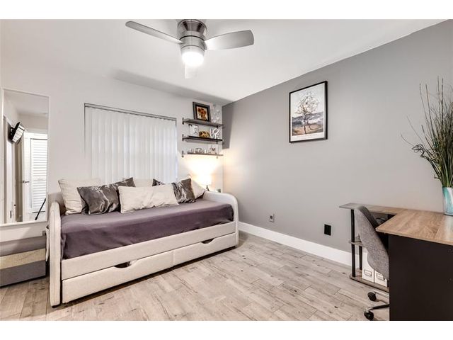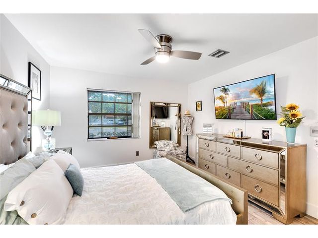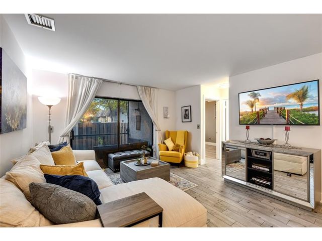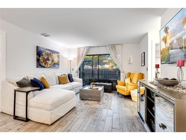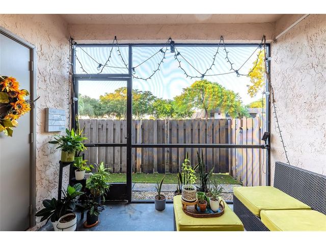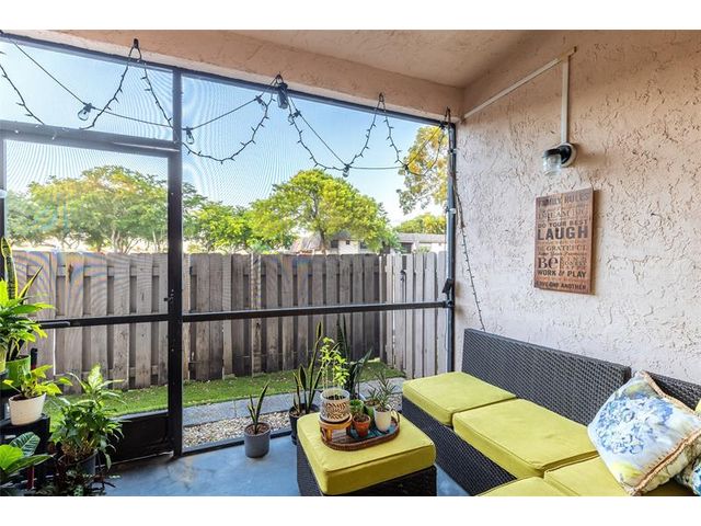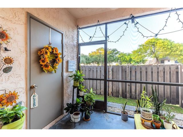 Modern, highly renovated and well-kept 2 br / 2 bath corner unit in Grenadier Lakes at Welleby in Sunrise. High-quality porcelain floors from Spain, solid wood doors, polarized windows (low electric bills), Nest thermostat, Ring cameras & sensors, recently updated appliances, frosted glass closet doors & more. Enjoy a spacious layout w/ ample storage, walk-in master closet plus a cozy screened patio w/ a storage closet leading to private fenced yard. Partially furnished w/ Pier 1 patio furniture, living room wall unit, TV & more. Secondary bathroom accessible from living room & bedroom. New roof. Community pool, convenient parking & 1 pet under 25 lbs permitted. HOA $580/month + $51/quarter incl water, sewer, trash. Investor friendly. Move-in ready!