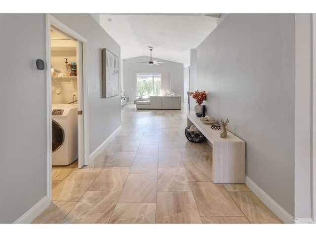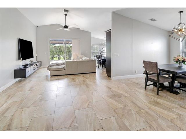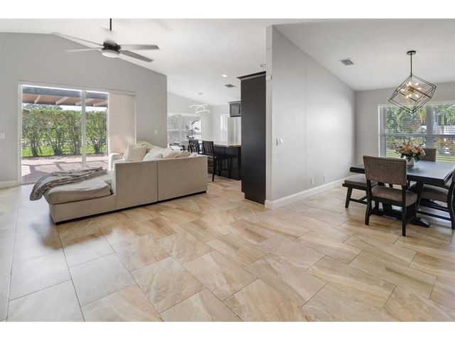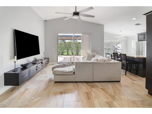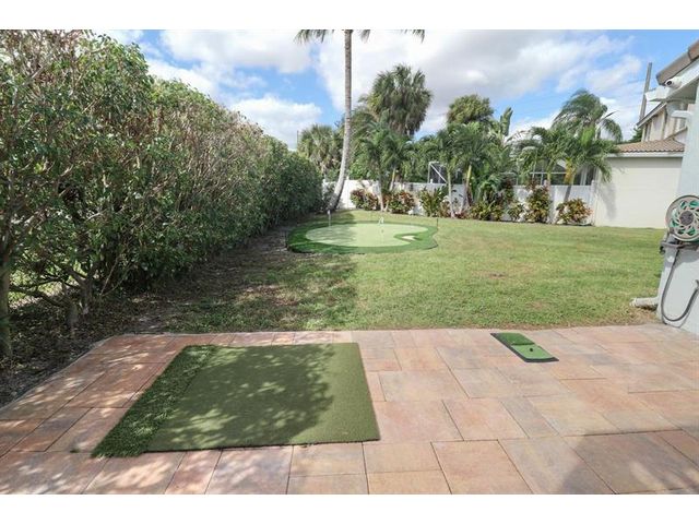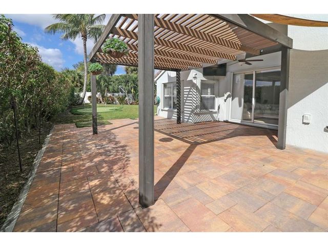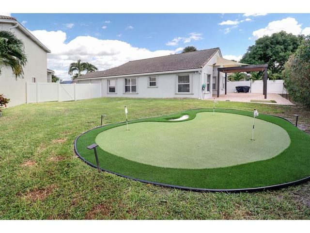Must-See Home on a Quiet Cul-de-Sac! This spacious home offers 3 bedrooms, 2 bathrooms, and a 2-car garage. Step into the modern kitchen featuring stainless steel appliances, a large island with granite countertops, perfect for cooking and entertaining. Ceramic tile flooring flows throughout the home. The master suite is a true retreat with high ceilings, a walk-in closet, luxurious bathroom featuring double sinks, quartz countertops, a freestanding soaking tub, and a separate shower, blending style and functionality. Enjoy your large fenced backyard with a pergola and a private putting green, ideal for gatherings and relaxation. Accordion shutters. Smart home access control and home alarm/camera system. A perfect combination of comfort, style, and luxury—this home won’t last long!