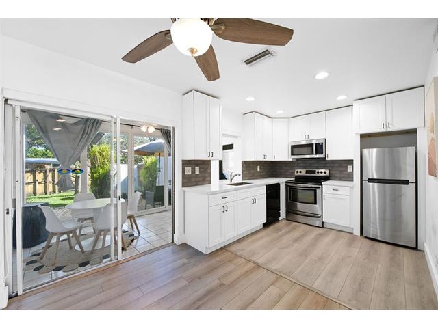 No HOA!! Rent short term, long term, or move right in! This substantially remodeled and fully furnished 2-bed, 2-bath boutique villa in Wooded Hills Estates, Hollywood, offers total flexibility and modern comfort. FEATURING: 2024 impact windows & doors, 2023 3-ton AC, 2016 roof, 2012 water heater, recessed lighting, and modern vinyl flooring throughout. The stunning 2023 kitchen features quartz countertops, white shaker cabinets, and new appliances. Enjoy a private fully fenced backyard, washer and dryer, and a primary suite with en-suite bath. With parking for two cars plus guest spaces and VA, FHA, and Conventional financing welcome, this is the perfect low-maintenance home or turnkey investment opportunity. Currently running as an AIRBNB, please contact me to schedule your showing!