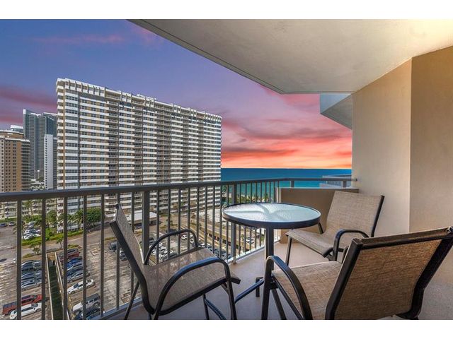 Amazing View from this Remodeled 2 bedroom 2 bath unit. Granite and wood kitchen with stainless steel appliances. ceramic floors thruout. Bathrooms have granite countertops and wood vanities. Beautiful sunrises and sunsets. Amenities galore. 2 restaurants , 2 exercise rms, steam rm, sauna, 24 hr security, valet, 2 minimarts, 2 tennis courts , a marina, courtesy bus and much more.