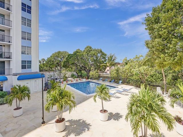 A premier 1 bedroom 1.5 bath unit beautifully updated with a new kitchen featuring quartz countertops, stainless steel appliances and spectacular views to the east. Located on the 12th floor on the Middle River, enjoy the gorgeous sunrise, downtown & beach skylines and pool views right from your open balcony. Unit features a new a/c, new electrical panel, impact windows & doors. Fees include premium cable, high speed internet, free laundry, water, extra storage & secure parking. Amenities include a heated pool, sun deck and an amazing community room with kitchen & BBQ area. Pet friendly. Prime location walkable to Wilton Drive & just minutes to downtown Fort Lauderdale, I-95 & the beach. Property manager on site. HOA has reserve funds & 50 Year Inspection complete.