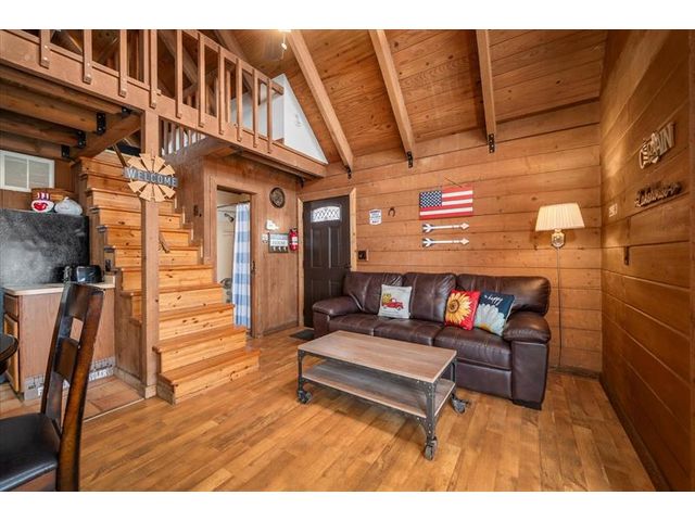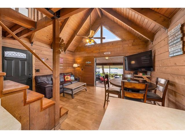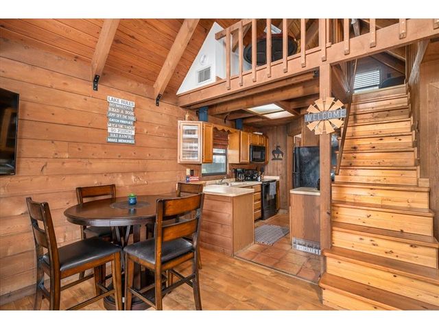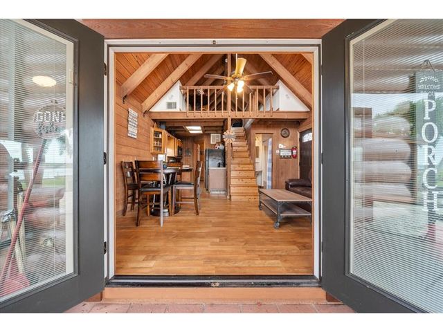Whether you are escaping the hustle and bustle of the city or looking for a turn-key investment, look no further. This charming, authentic log cabin is situated on the water in a small fishing-focused community. The cabin offers two bedrooms, one on the main floor and a second in the loft, one full bathroom with tub and shower. A new water heater, newer roof, new water filtration system, newly paved driveway that fits two vehicles, and screened-in patio which over-looks breathtaking sunsets. The community features a heated pool with whirlpool, docks for boats (first-come, first-served), fish-cleaning station, community deck, fire pits, and community laundry room. The cabin is already rented for most of the upcoming winter season, which can be transferred to the new owner or canceled.