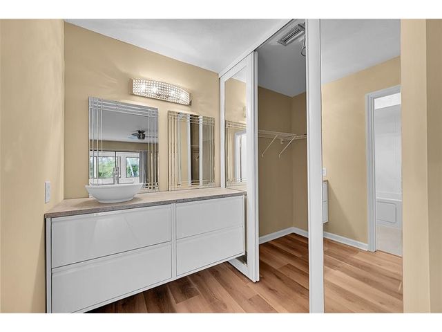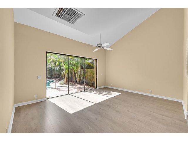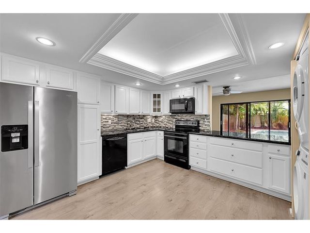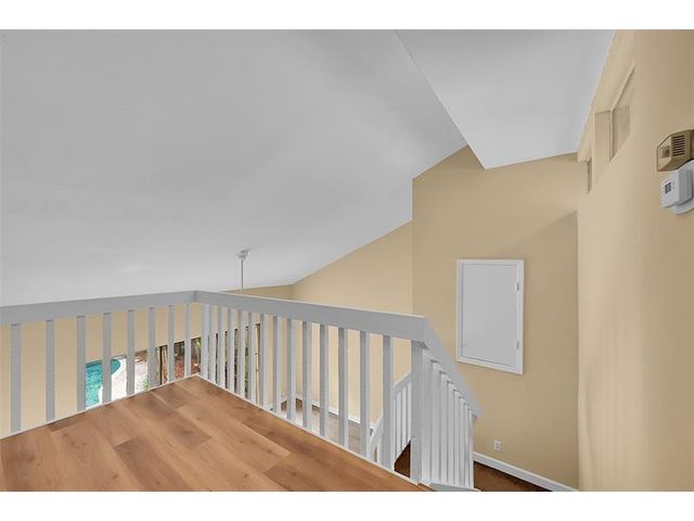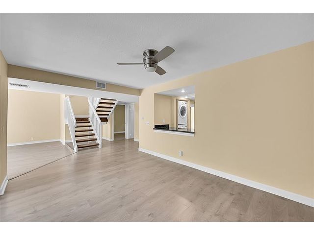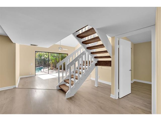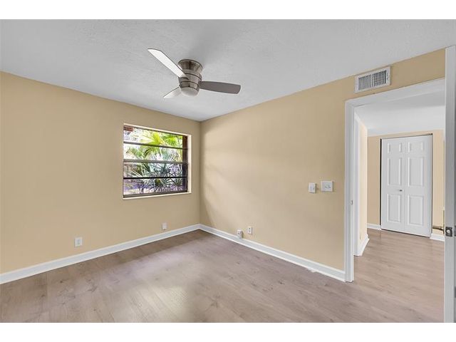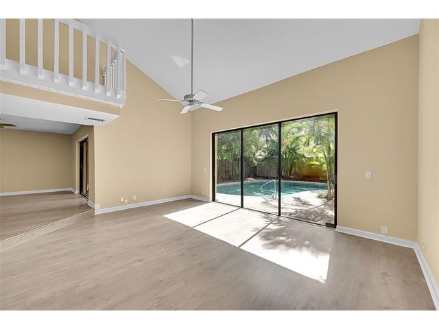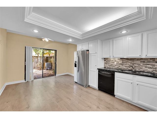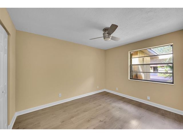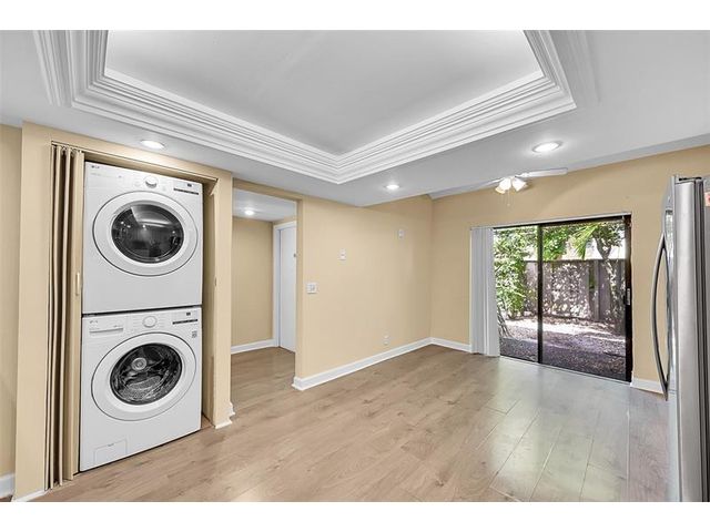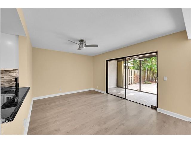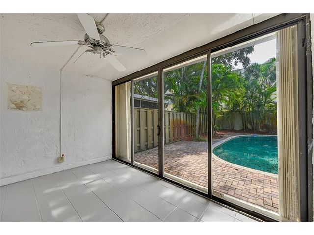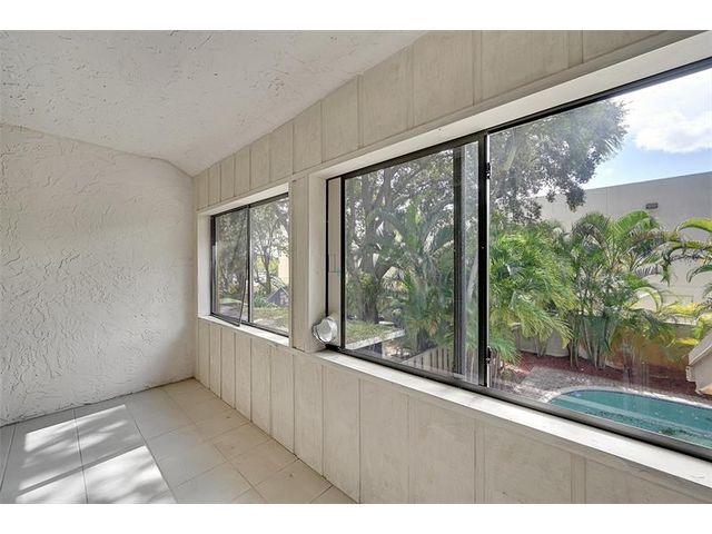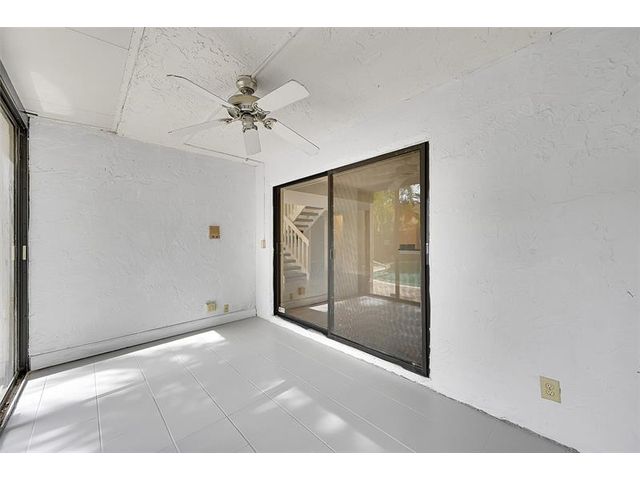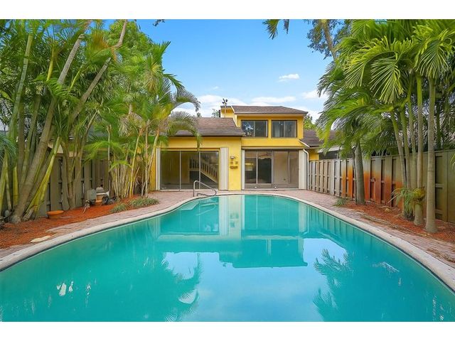 Completely updated 2BR/2BA townhouse with private pool and tropical landscaping. Features vaulted ceilings, large windows overlooking the backyard, granite counters, soft-close cabinetry, and newer stainless-steel refrigerator. Bathrooms recently updated with new vanities and flooring. One bedroom is on the ground level; the upstairs master includes an enclosed patio and walk-in closet and has new flooring. Additional highlights include laminate flooring, loft area, covered parking for two or more cars, accordion shutters, indoor and outdoor storage, and brick pavers surrounding the pool — perfect for entertaining or relaxing in your private oasis.
