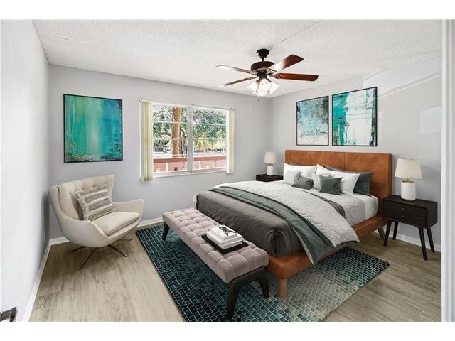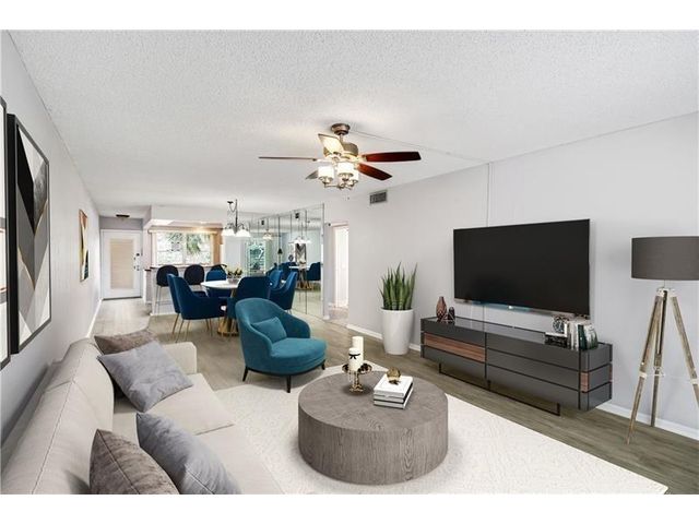 Beautiful 2 Bed 2 bath spacious condo that has been remodeled. Wood laminate floors throughout the entire home. Updated bathrooms, quartz kitchen counter tops. New AC unit with warranty. Large screened balcony with roll down shutters. Unit has own storage. This Resort style gated community offers: A Must-See Spectacular Club House, Golf, Billiards, Library, Ballroom, Hobby Rooms, Fitness Center, Interest Clubs Galore, Aquatic Center, Tennis Center, Theater, Pickle-ball, Walking and Bike Paths, Courtesy Buses for In and Outside Community and Much, More. Minimum credit score is 700, one person must be 55+. Association includes water, cable & Internet.