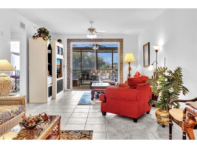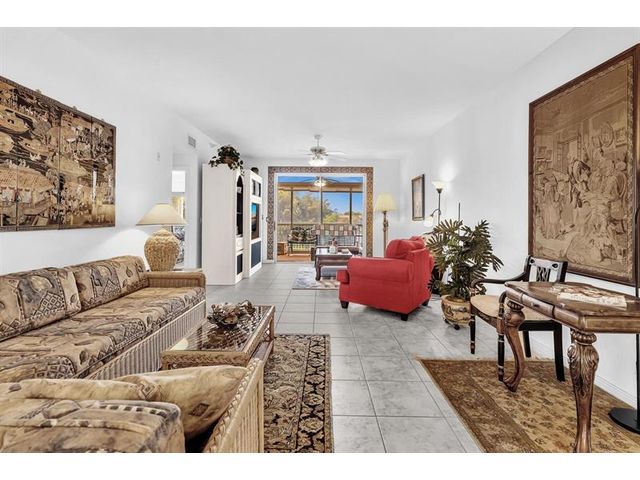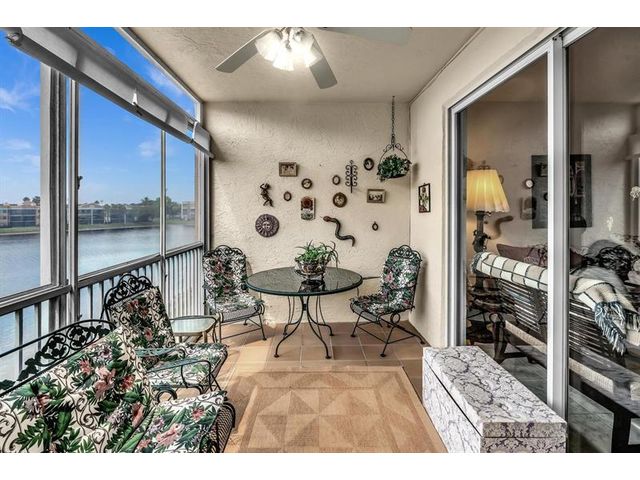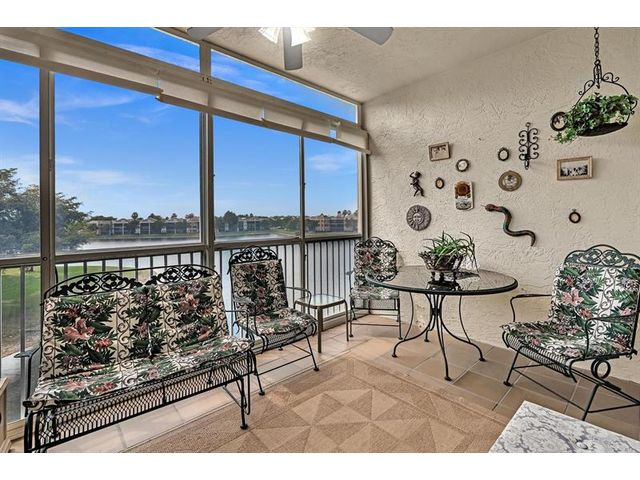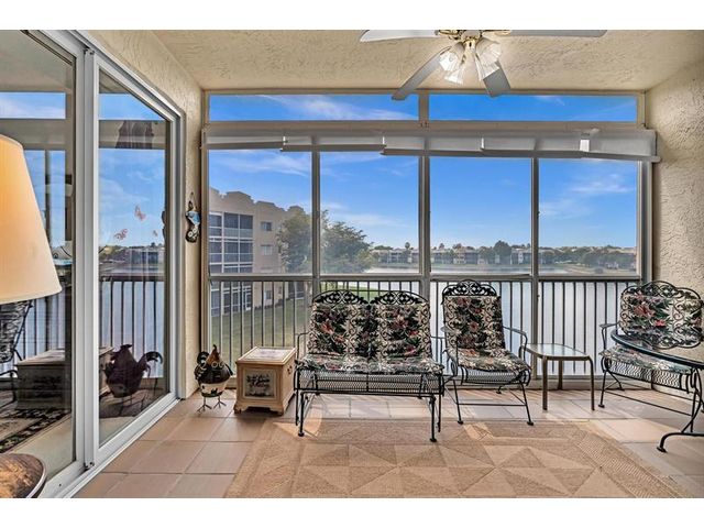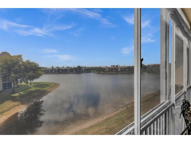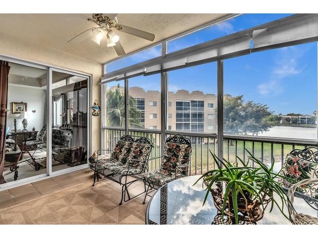 *Stunning Water View Corner Unit* 1986 sq. ft * This lovely home creates a fantastic and welcoming atmosphere with two bedrooms & two baths. The 2nd bedroom includes a Murphy bed for added convenience. There is a family room/den/formal dining room, which can also be used as a third bedroom. The kitchen features white cabinets & a custom island. Extra freezer. Tile flooring throughout the living area enhances the gorgeous open layout. The master bedroom boasts a spacious walk-in closet & a large soaking tub. Include a private laundry room & storage. Enjoy your front screened patio that greets you before getting to your front door & 2nd large balcony overlooking the water view, which is excellent for relaxing. Southampton is the only community that has a gym on the site. Guard at the gate.