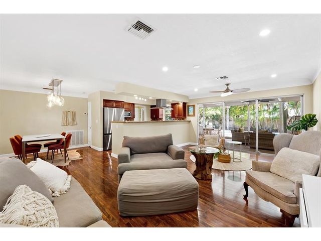Welcome to 806 SE 9th Ave, nestled in The Cove, just 1.7 miles (2.74km) to the ocean, fine dining & entertainment. Beautifully updated single-family home offers a perfect blend of comfort & style. Spacious 2-bedroom, 2-bathroom residence features high-quality renovations, including gourmet kitchen w/ upgraded appliances, wine cooler, granite countertops, & breakfast bar. Brand New A/C installed June 2025, dryer, dishwasher, & refrigerator, ALL newly installed in 2024, as well as a New washing machine installed 2023. Additional highlights include indoor laundry room, ample storage, attached garage, and circular driveway. Step outside to enjoy your private backyard, complete w/ a serene pool and secluded patio, ideal for relaxing and entertaining. This home is ready for your personal touch.