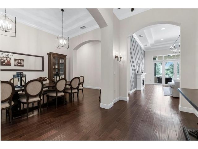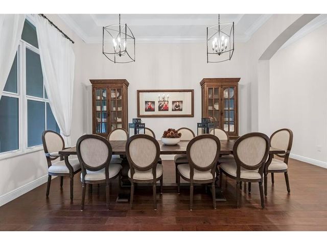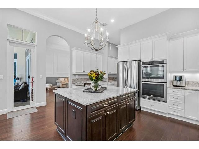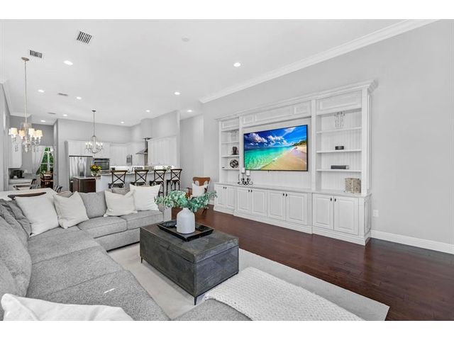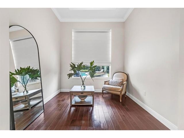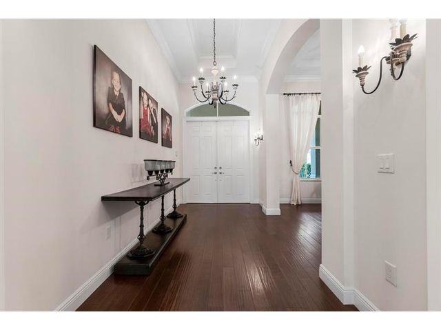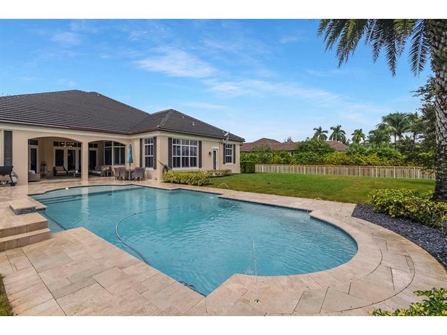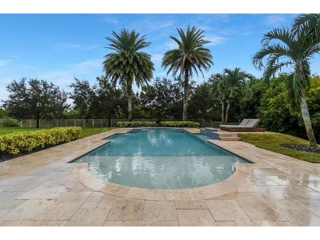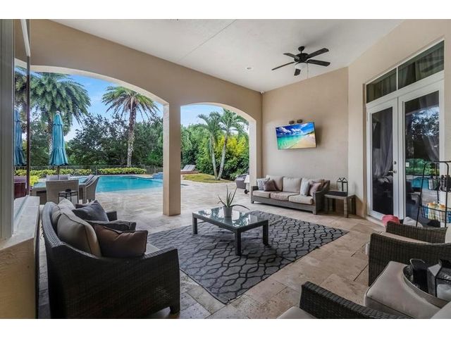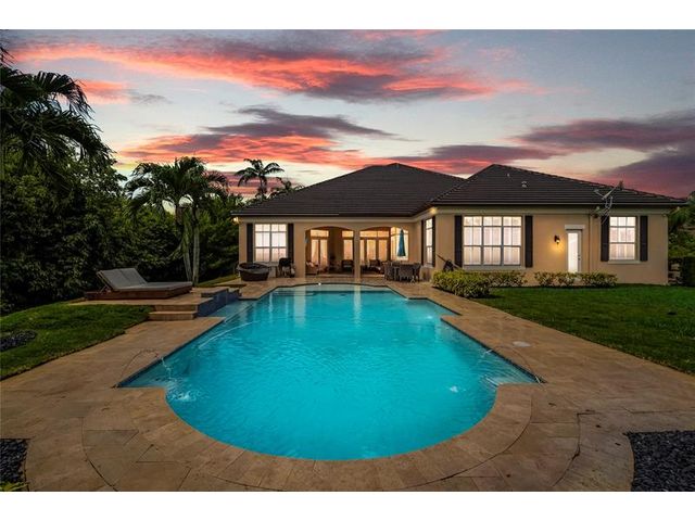 Welcome to Provence, a gated estate community in desirable Davie. This 4 bedroom 3.5 bath + office semi-custom home offers the perfect blend of luxury & comfort. Impact windows/doors, hardwood floors, & two family rooms w/ chef's kitchen that includes wood cabinetry, granite counters, walk-in pantry, large island & stainless appliances, including double ovens & electric cooktop. Primary bedroom w/ access to veranda, sitting area, & two generous closets. The en-suite bath has separate vanities, soaking tub, separate shower & private lavatory. A resort-style backyard w/shaded patio overlooking the fenced backyard, saltwater pool w/ fountains surrounded by travertine pavers. Excellent schools & convenient proximity to highways. NEW roof 2021. This property is an ideal choice for families!