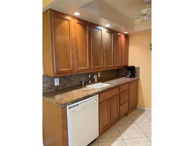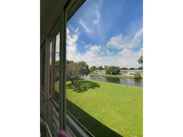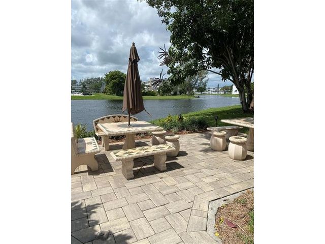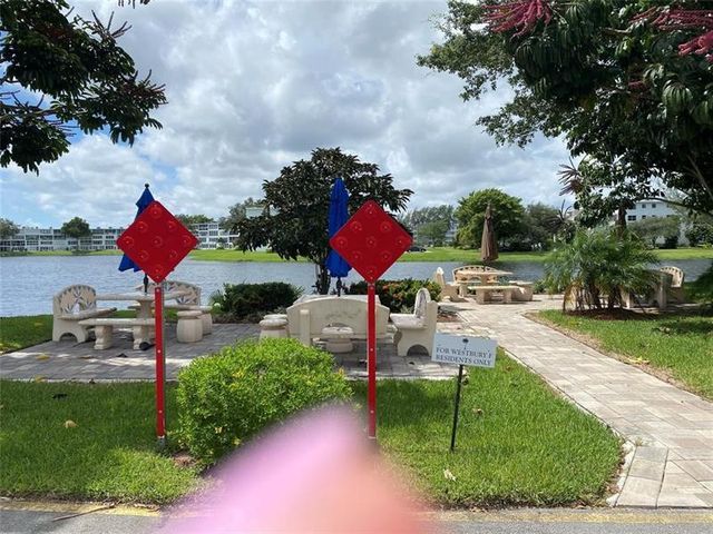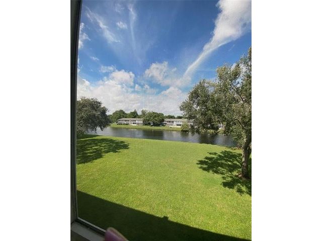 UPDATED, 1/1.5 WITH WATER VIEW IN PRIME WESTBURY AREA! Furnished. 785 sq.' condo with galley kitchen that boasts granite counter tops, recessed lighting. White and stainless steel appliances including a dishwasher 2022 AC with permit, tile flooring except in primary bedroom which has carpeting. Updated bathrooms, extra storage on enclosed patio with floor to ceiling sliders, and tranquil water view from your bistro set. Close to Westbury pool, plaza and main gate at Hillsboro blvd. Building boasts a 3 common area patios on the water for an early evening spirit or meal. PROOF OF FUNDS AND FICO SCORE TO BE PROVIDED WITH ALL OFFERS.
