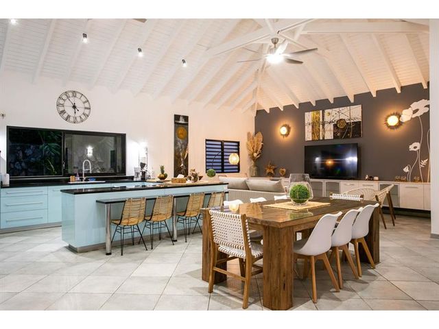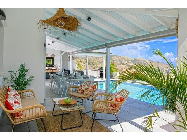 Located in a secure, residential area on the French side of Saint Martin, this stunning open-concept villa offers breathtaking sea and mountain views. Just 5 minutes from Grand Case airport and the beaches of Orient Bay and Grand Case, with shops, restaurants, and daily essentials nearby. This fully furnished 4-bedroom, 4-bathroom home features a modern open kitchen, metal roof, spacious 70 m² garage, cistern, pool, jacuzzi, and dual access with electric gates. Bright, turnkey, and income-generating — a perfect blend of comfort, style, and convenience. Don’t miss this unique opportunity!