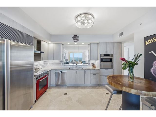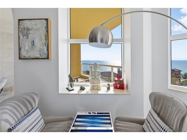 The Palms Condo unit 9D, an impressive Portofino flow-through model with sunrise and sunset views to delight the senses, and enjoy the Florida lifestyle. Magnificent renovations for a comfortable and luxurious living, private elevator to the owner’s foyer, spacious entry immersed in natural light, and ocean views starting from the front door. Prestigious gated complex located directly on the sand with full beach service (chairs and towel), 2 pools, state-of-the-art gym, tennis, racquetball/ squash courts, Club Room, Party room, 24 hours valet and security. Pet friendly. Most desirable location: dining, shopping, state parks, entertainment, new grocery store, Publix within a couple of blocks. Great schools and close to downtown.