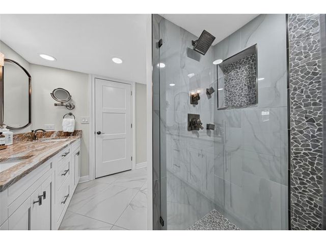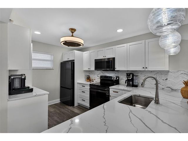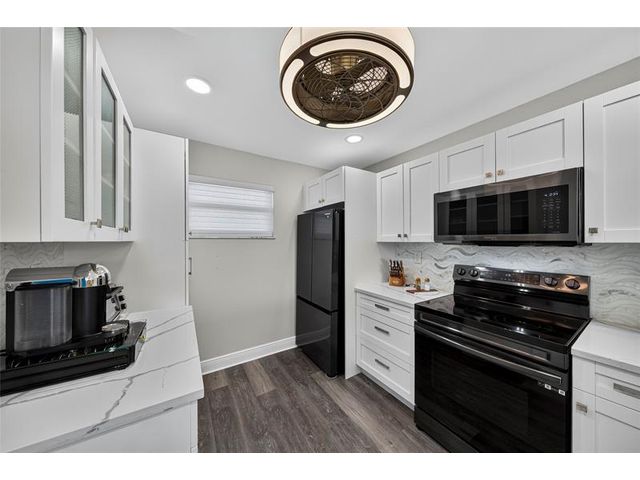 Stunning Fully Renovated 2BR/2BA Condo with Resort-Style Amenities in a 55+ community! Beautifully updated, light-filled condo featuring an amazing pool view from the screened terrace with accordion shutters. This modern unit offers impact windows, water-resistant laminate flooring, and an in-unit washer and dryer. The open kitchen showcases wood cabinetry, quartz countertops, a tile backsplash, and black stainless-steel appliances, opening to a spacious dining area perfect for entertaining. The primary suite includes dual walk-in closets and a sitting area, and both bathrooms have been completely renovated with elegant finishes. Maintenance includes cable, HBO, and internet. Just move right in!
