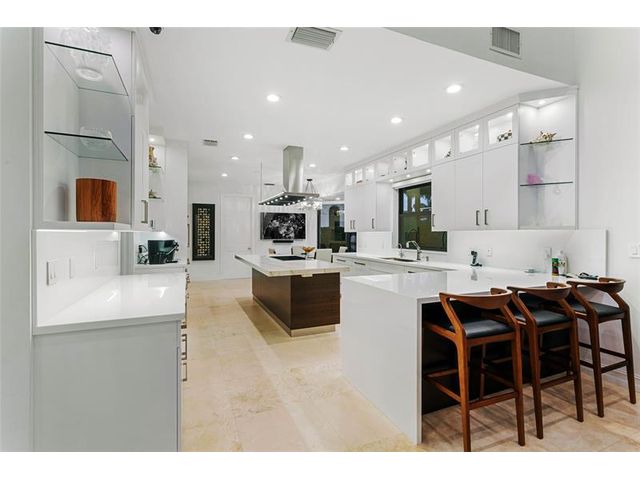 Remarkable Deepwater Estate sited on 100’± of waterfrontage on the wide Flamingo Canal in sought-after Lighthouse Point on a rare island street. This classic “South of Sample” estate reveals 4 beds, 4.1 baths & 4,236 Total SqFt. Impressive double height foyer opens to the re-imagined light-filled interiors. Each level encompasses a primary waterfront suite & garden front guest suite all with updated en-suite baths. Gourmet kitchen w/custom cabinets & Wolf/Subzero appliances. Other amenities include 2 Bay Garage, Impact Windows, new carpet, 3 zone A/C, custom walnut built-ins & security cameras. Outdoor entertainment is enjoyed at the sun-splashed pool secluded in lush landscaping. For boating enthusiasts, there is a full service 90’+/- dock just minutes from the Hillsboro Inlet.