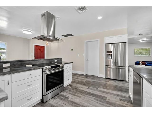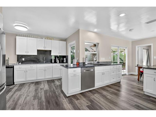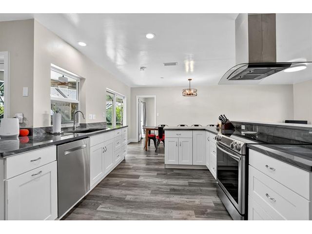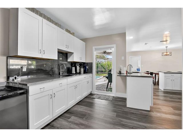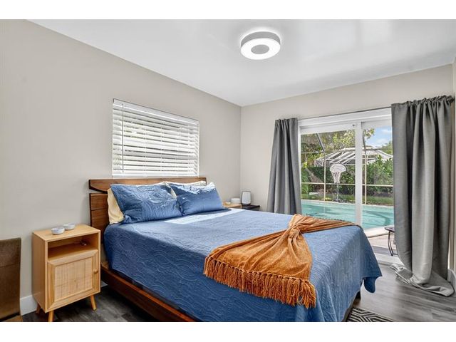 Beautifully upgraded 3-bedroom pool home in Country Club Village—no HOA! This move-in-ready gem features a new metal roof (2025), full impact windows & doors, and a split floor plan with an optional 4th bedroom/den. The chef’s kitchen boasts quartzite counters, stainless appliances, soft-close cabinets, and a custom pull-out pantry. Enjoy bright interiors with smooth ceilings, smart Hue lighting, and luxury vinyl floors. The primary suite offers French doors to the pool, custom closets, and a spa shower. Relax in your screened, heated pool with new pump and heater, surrounded by magical evening lights. Garage includes mini-split A/C—ideal for storage or workshop use; cast iron pipes have been re-lined. *Thi home qualifies for our Guaranteed Home Sale program!*