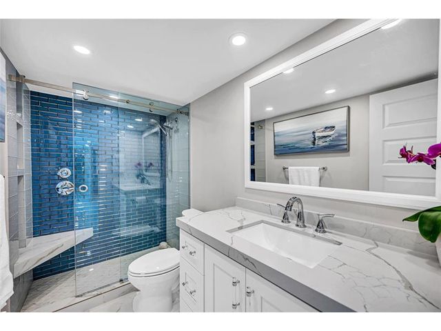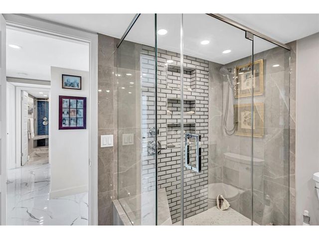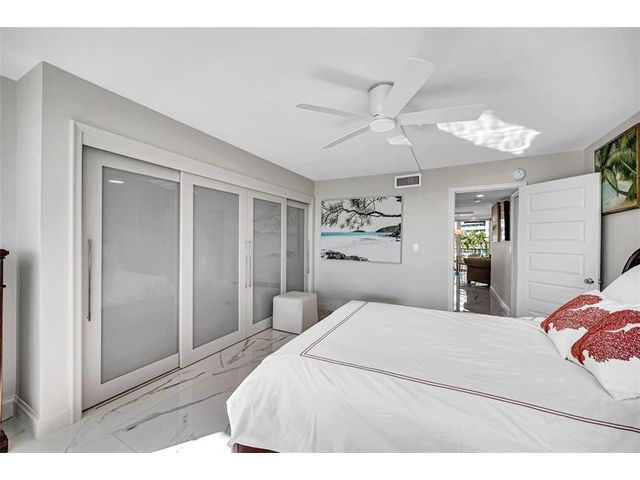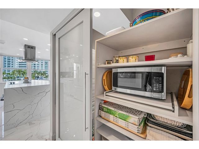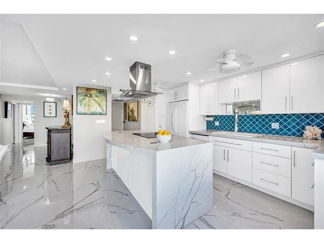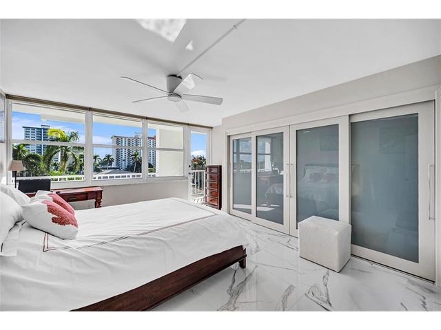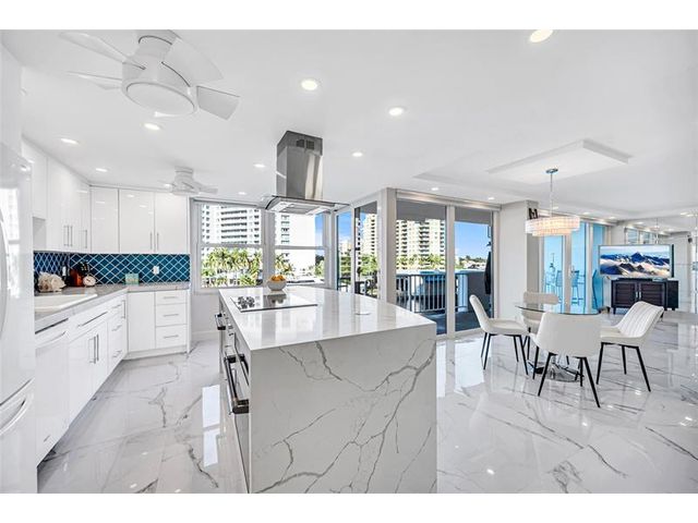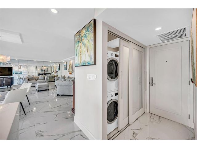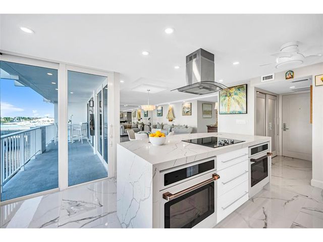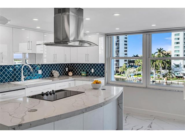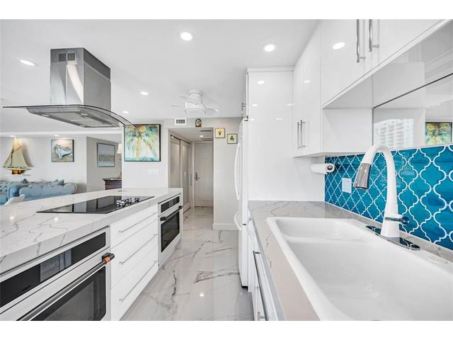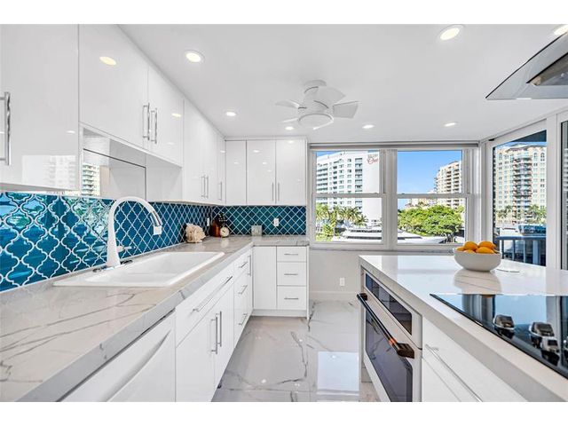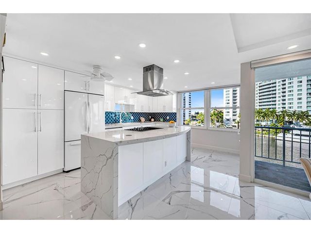 Stunning totally renovated waterfront condo w/exquisite finishes including 32” porcelain tile floors throughout, beautiful modern kitchen featuring quartz countertops, magnificent center kitchen island w/matching quartz waterfall edging, with two built-in Café Ovens & Café Cooktop, soffit lighting in living room, high impact double sliding doors to oversized balcony w/spectacular views of the Intracoastal, beautifully designed bathrooms w/sleek glass tile & custom vanities w/quartz countertops. Move in ready! Sunrise East is a well-managed building w/semi-private elevators & breathtaking panoramic views from its rooftop pool. 50 year recertification done. Golden opportunity to own this architecturally elegant gem of a home & to enjoy sunrises & sunsets from your living room & balcony.