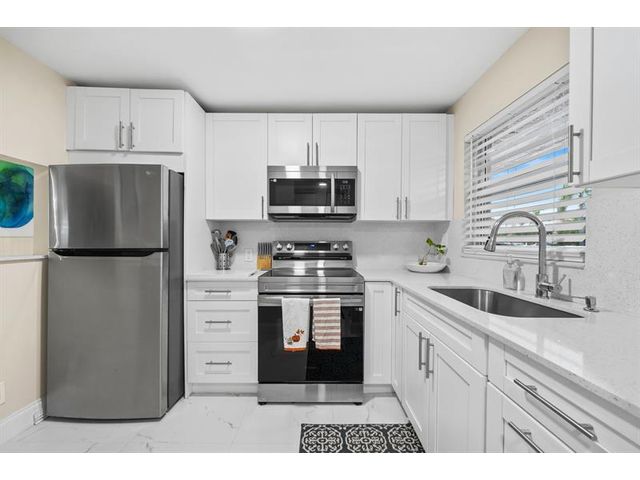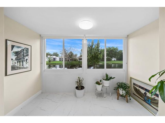 Easy to show!!! Beautiful, fully remodeled, featuring 2 spacious bedrooms and 2 modern bathrooms. 1st floor unit in the desirable Sunrise Lakes, 55+ community. Move-in ready, new flooring, new kitchen, new bathrooms, 2025 AC, and ALL IMPACT WINDOWS AND FRONT DOOR. This unit offers serene water view, bright living area, with resort-style amenities including golf, gym, pools, tennis and more!