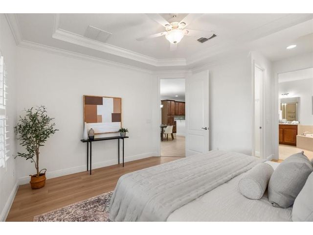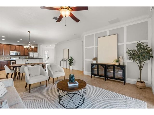 Stunning 4-bedroom, 4-bath home in the exclusive Eagle Creek Golf Community near Lake Nona. Enjoy luxury, leisure, & location in this beautifully maintained home with crown molding, plantation shutters, & spacious 1st floor primary suite with luxury vinyl flooring. The gourmet kitchen opens to a bright living area perfect for entertaining. Upstairs features a loft, new plush carpeting & 3 bedrooms one has private balcony overlooking the golf course. Relax on the extended screened patio with serene golf views. Smart home features, blink cameras, keyless entry, custom window treatments & 2car garage. Enjoy resort-style amenities:pickleball, tennis, pools, fitness center, splash pads, playgrounds, and 24-hour manned security—all minutes from top-rated schools, Medical City, and fine dining.