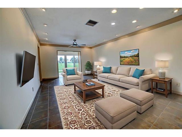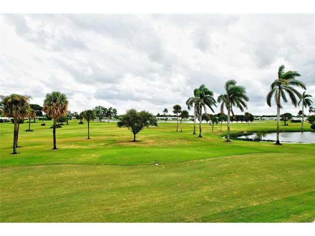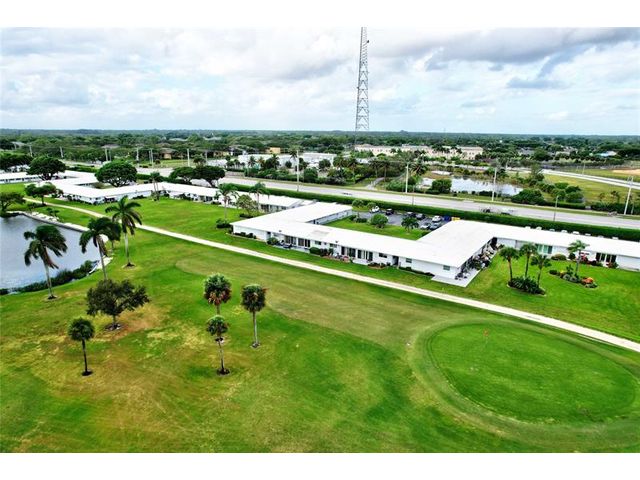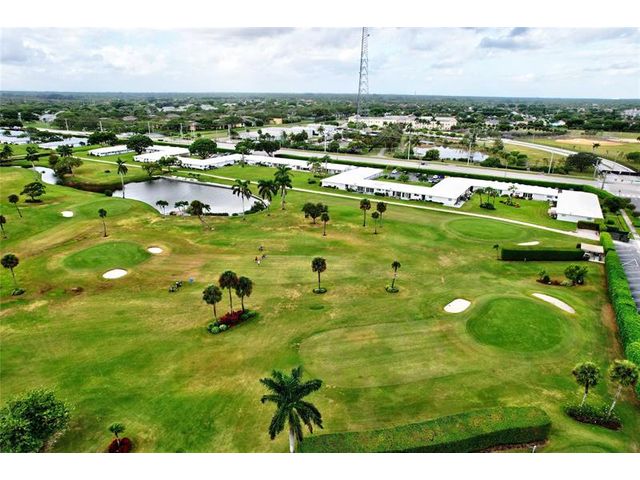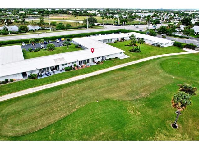 Step into the charm of this inviting 2-bedroom, 2-bath, first-floor corner villa overlooking the lush greens of the Palm Beach Leisureville golf course. Ready for your personal touch, this home offers endless potential to make it your own—just as the virtually staged images suggest. Enjoy panoramic views of the Par-3 course and lake from your patio on the 18th hole. Features include wood cabinetry, new appliances, hurricane-impact windows and doors, custom window treatments, and retractable patio awning. Indulge in the amenities this 55+ community offers—three clubhouses each with its own pool, a fitness center, and a variety of activities for every interest. Located minutes from I-95 and major shopping, this home offers the perfect blend of recreation and convenience. Small pet friendly!