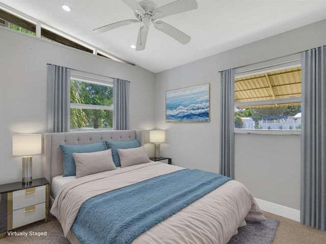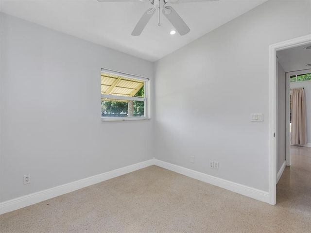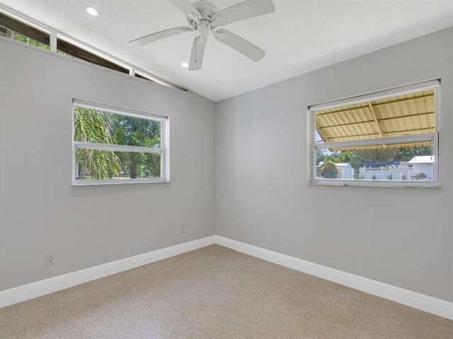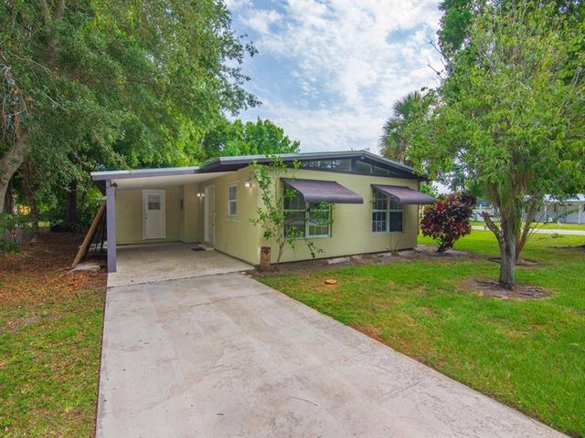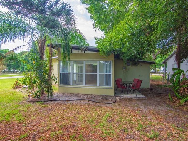 Income Property... Charming 2 bed, 1.5 bath concrete block home on a large corner lot in a safe & quiet neighborhood. Features incl: 2017 metal roof, updated 2017 electric panel, refinished terrazzo floors throughout, central A/C (2016), ceiling fans in every room & a freshly painted interior. Enjoy the air-conditioned Florida room, separate laundry space, and rinse off after the beach in the outdoor shower. Just minutes from beaches, dining, and shopping. Great income potential—perfect for first-time homebuyers or investors seeking comfort, convenience & coastal living.