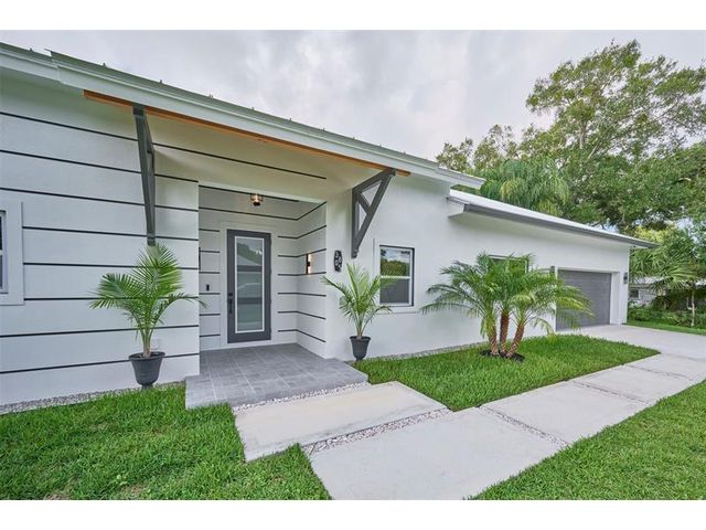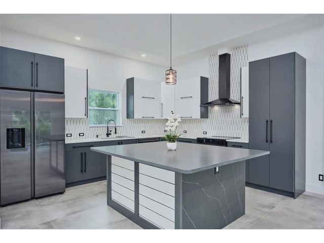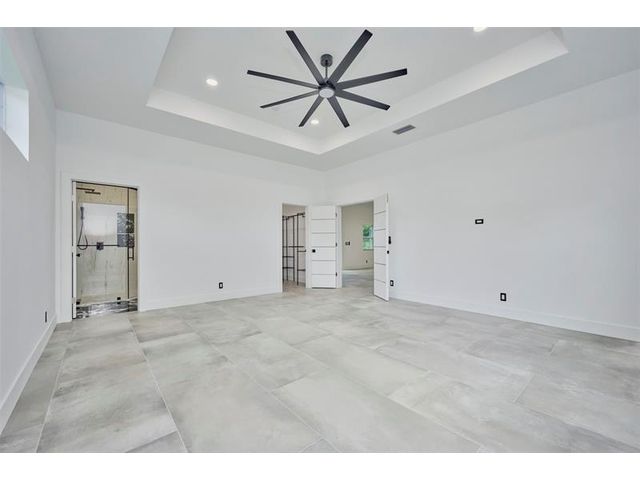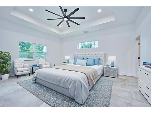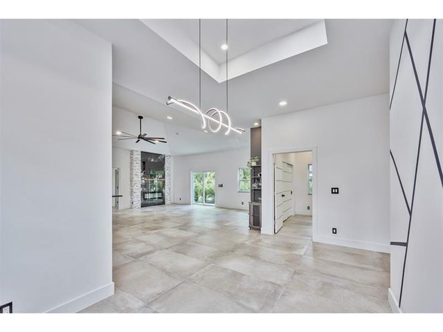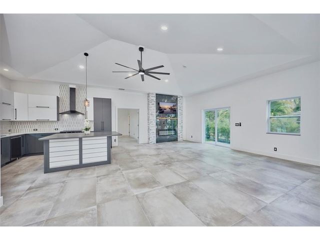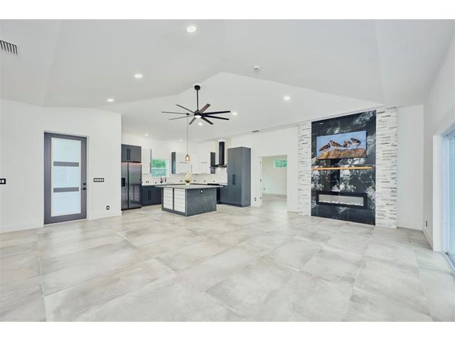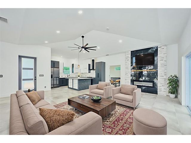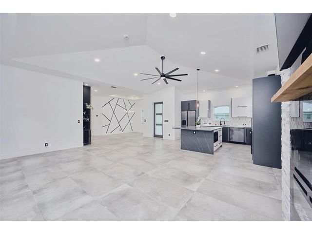 Custom built modern style 3 bedroom, 2 bath home on a corner lot. Open-concept layout that seamlessly blends style and functionality. Soaring vaulted ceilings, sleek marble floor and high end finishes throughout. Designed with smart home technology, functional elegance, and striking appeal, including dramatic tray ceilings for a truly sophisticated living experience. Designer-selected finishes throughout elevate the space. No HOA/no restrictions. Photos are virtually staged.