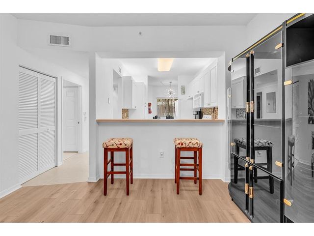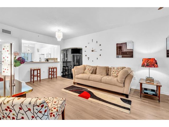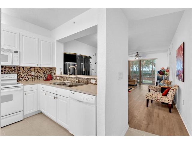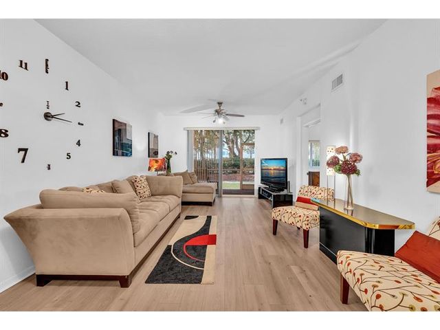 Spectacular* First Floor* 2-bed,2-bath condo located in desirable Yardley at Kings Point! Step through the private gated patio that greets you before reaching your front door. This unique home offers a warm welcome. It is a lovely home with an open white kitchen overlooking the dining/living room/screened porch. New beautiful wood flooring throughout the entire house. New faucet sink in the kitchen. Enjoy the eat-in breakfast area. Gorgeous open layout & a magnificent split floorplan. Light & bright. The master suite offers spacious walk-in closets. AC 2021—Enjoy your screened porch—gated community. The hurricane impacted windows & sliding doors. Great amenities include indoor & outdoor pools, a Sauna, a Clubhouse, a Theater, a Billiard Room, Free transportation buses, a gym & more.