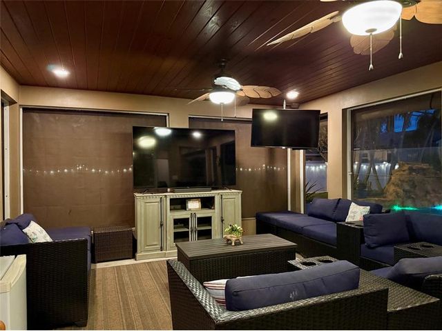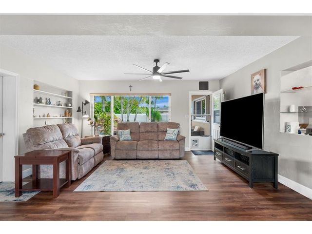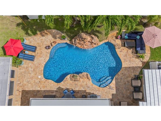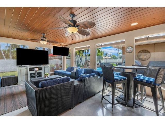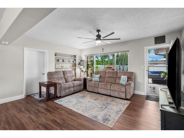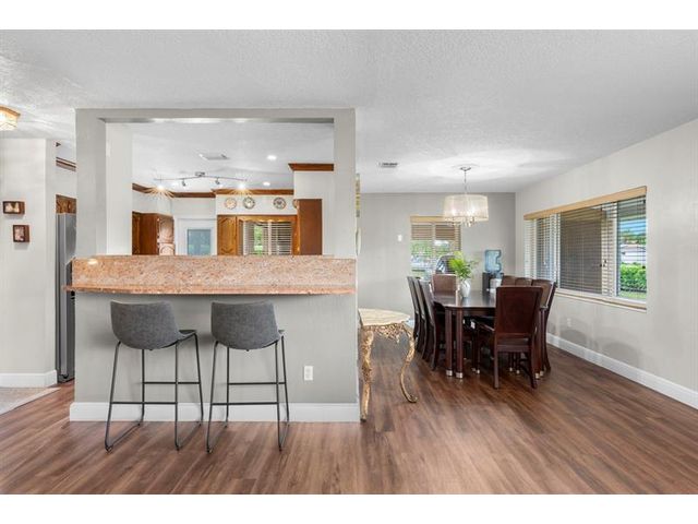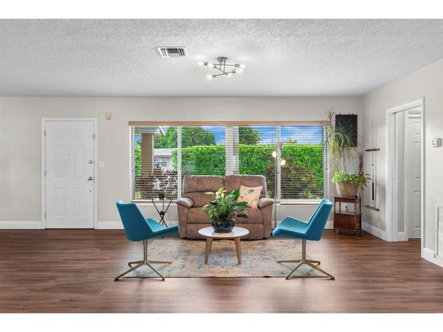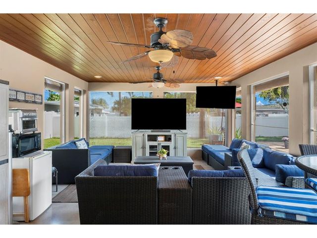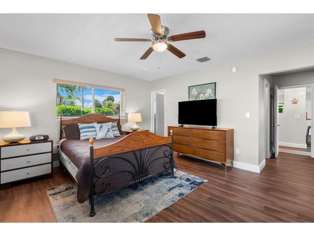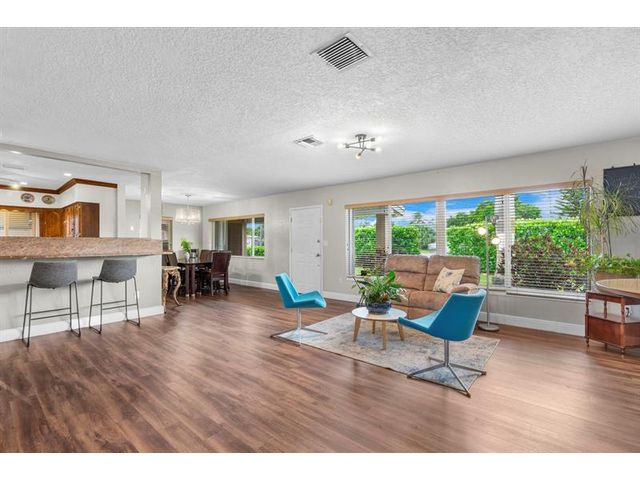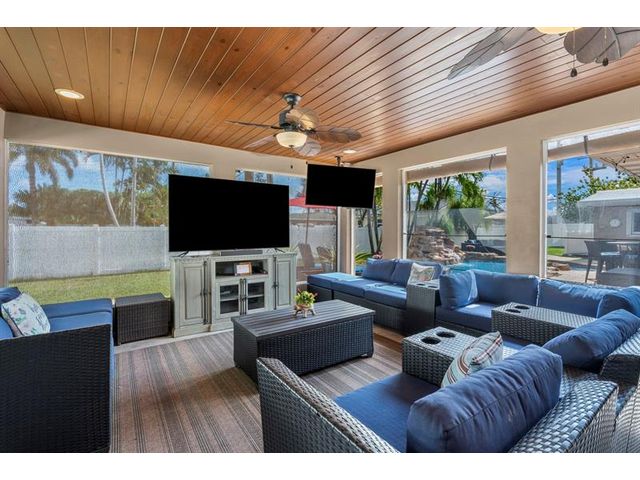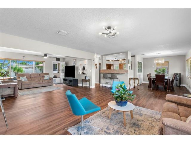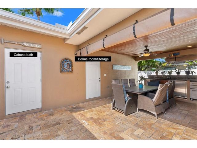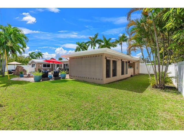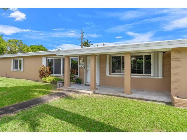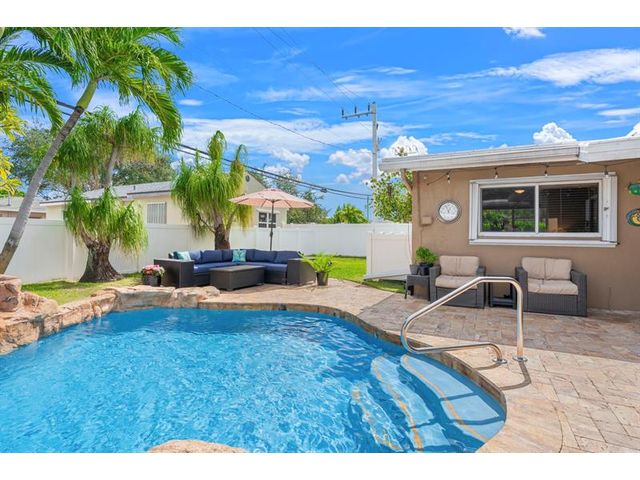 Spectacular corner lot with access from NE 48th Street (not Andrews Ave as address indicates). Situated on a 13,000 SF double lot, this home features an expansive yard, resort-style heated/chilled saltwater pool w/waterfall. Interior is approximately 2,000 SF of living space with split bedroom plan with 3 bedrooms and 2 full baths plus a third cabana bath. Additional bonus room currently used as storage. Additional features include LVT flooring throughout, newer windows, and accordion shutters. Open layout with views of the yard and pool. Oversized screened pavilion (14x19) and covered dining, all equipped with KEVLAR HURRICANE FABRIC for full protection. NEW ROOF (2025). Whole-house GENERATOR (2024). HVAC (2024). Double CARPORT w/HURRICANE fabric. Transferable termite program &much more.