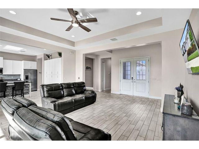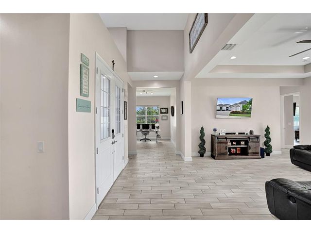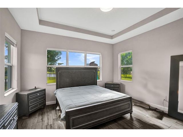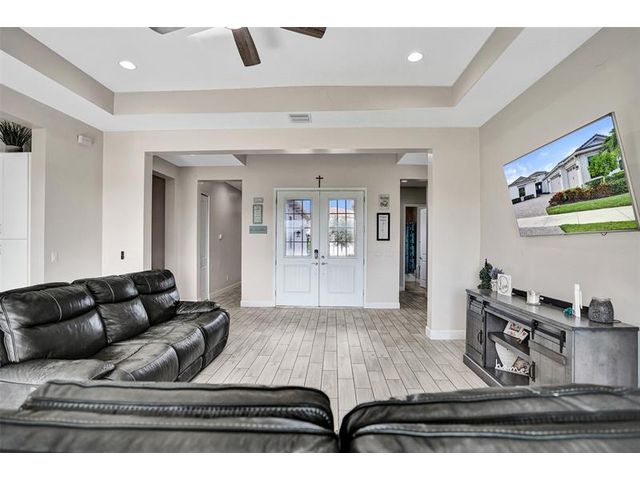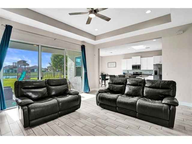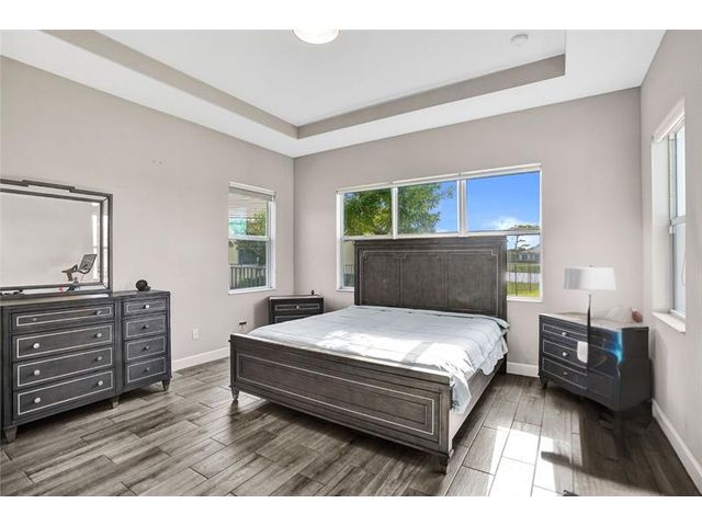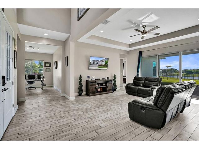 Welcome To The Best Priced Home In The Hammocks On Over 1/4 Acre Pie Lot! This Isn't Your Typical Builder Grade Home, w/ Optimum Features Such As Premium Tile Flooring, Extended Kitchen Island & Custom Window Shades Its Just The Beginning! Step Inside This Triple Split Beauty & You'll Enjoy A Stunning Sightline Through The 3 Panel Pocket Sliders Of Sparkling Lake Views! Abundance Of Premium Kitchen Cabinets & Island w/ Seating For 10! Bonus Flex Rm/ Den Is Easily 4th Bedrm. Guest Wing Complete w/ EnSuite & Walk-In Closet. Spacious Primary Suite w/ More Water Views, Spa-Like Bath w/ Dual Sinks, Massive Shower & TWO Walk-In Closets. Newer Paint. Reallink Security Sys. Smarts Fans & Garage Doors. Exterior Smart Lighting. Floor Attic Space w/ Lighting For Bonus Storage. 3.25% VA Assumable