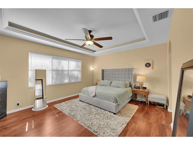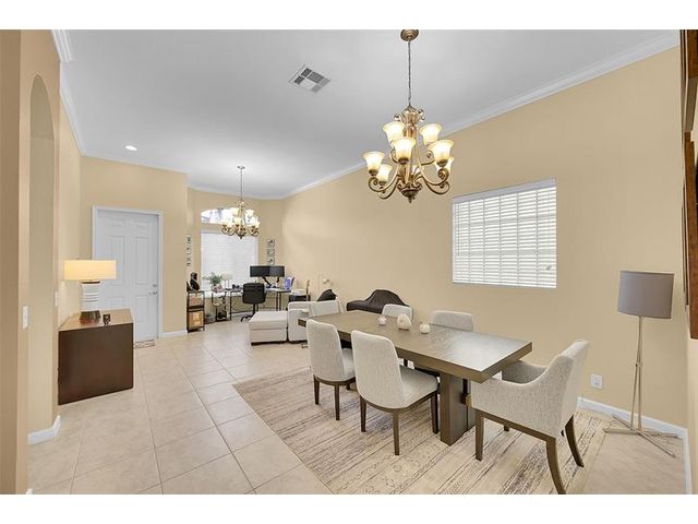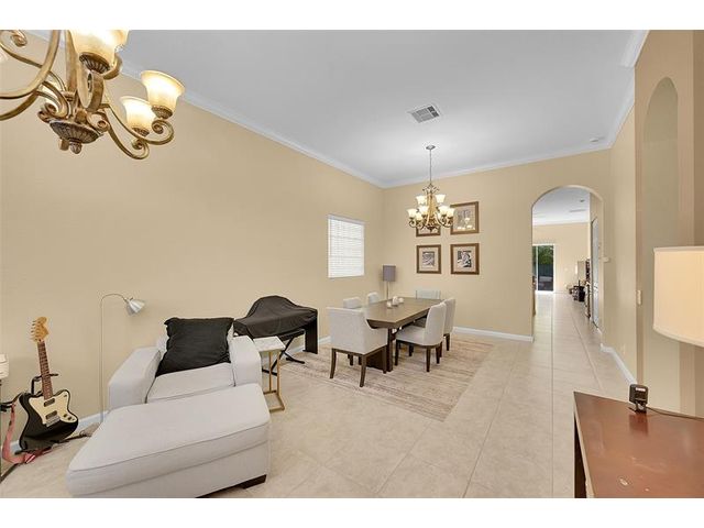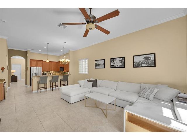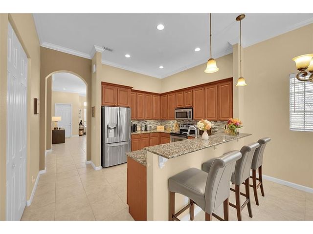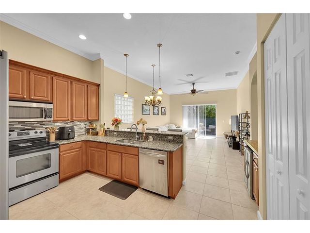 Spacious 3BR/2BA/2CG home in the gated, all-ages community of Knollwood. Features an open floor plan with 10-ft ceilings, crown-molding, granite countertops/backsplash, stainless steel appliances, wine cooler bar, and pantry. Tile floors throughout main living areas and a dedicated dining room with upgraded lighting. Split layout with a large primary suite featuring laminate flooring, tray-ceiling, dual closets, tub/shower combo, dual vanities, and frameless shower door. Accordion shutters, 2024 A/C & WH, LG front-load washer/dryer in laundry room. Enjoy the outdoor patio with Travertine tile, and plenty of room for BBQ's, pets play area, and the resort-style amenities including the community pool and playground just one block away, plus Knollwood Park next door for peaceful nature walks