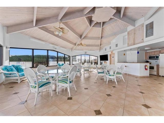 Year round vacation living in this enticing lanai townhome with private, deeded beach access. Whether you are looking for a permanent residence or a delightful vacation home, this unit will not disappoint. One bedroom & two full bathrooms. Dramatic volume ceilings. Huge impact doors open to good sized balcony with relaxing views of the gardens and pool. Open Kitchen to Living Area. Laundry room. Upstairs bedroom with full bathroom & spacious closets. Amenities include 2 pools, fitness room, community room with kitchen & bathrooms, sundeck, bike room, car wash, 24 hour door person. Parking right in front. Come see for yourself to appreciate. Walk across the street to your private beach!