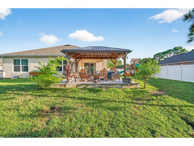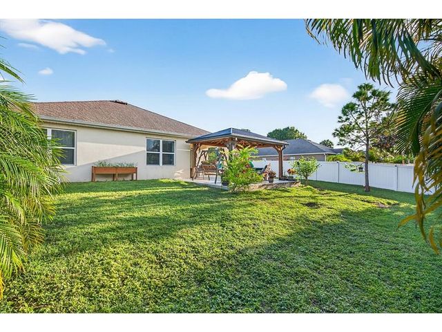 Come Tour this beautifully maintained 4 bedroom, 2 bathroom, 2018 Sebastian Highlands home. Step inside to an open layout featuring stylish vinyl plank flooring throughout. The bright kitchen offers ample cabinetry and prep space, ideal for everyday living and entertaining. Relax and unwind in the peaceful backyard, complete with a charming gazebo sitting area—perfect for morning coffee, evening cocktails, or enjoying Florida’s breezy nights. Centrally located for quick and easy access to the riverfront, shopping, entertainment, medical facilities, and beaches!