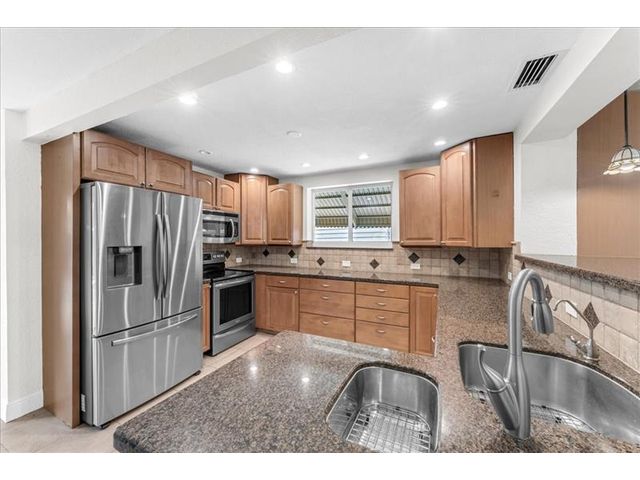 Welcome Home! This beautifully updated 3-bedroom, 2-bath home offers comfort, style, & convenience in a prime location. Enjoy an open-concept floor plan designed for family/friend gatherings & everyday living. The 2021 flat tile roof, PGT impact windows and doors, PVC plumbing, 2025 HVAC & updated electrical system provide peace of mind and excellent energy efficiency. Step outside to your private backyard oasis, featuring a sparkling heated saltwater pool, custom pergola, & a California-style outdoor kitchen — perfect for entertaining and year-round barbecues. Additional features include a 1-car garage, ample storage, & no HOA, giving you the freedom to truly make this home your own. Centrally located near major highways, parks, & top restaurants — this home truly has it all!