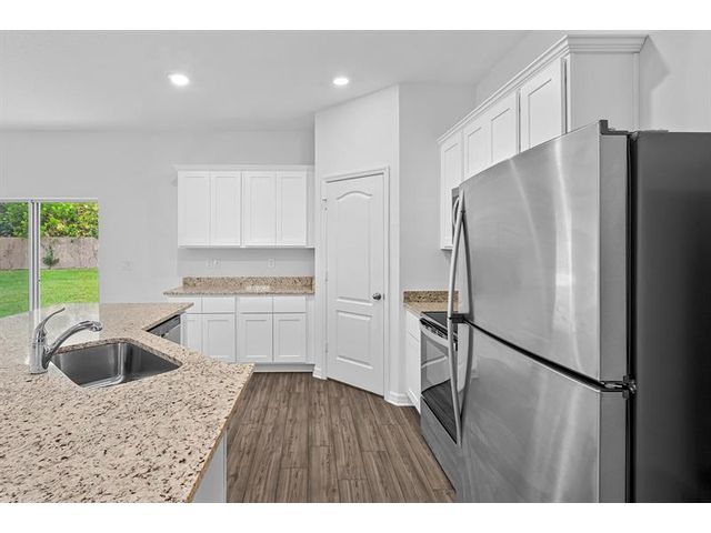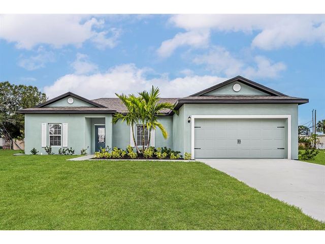 Ask us about our interest rates, builder paid closing costs, & no down payment options! The Cran is an open floor plan, perfect for hosting gatherings. The chef-ready kitchen features beautiful wood cabinets and granite countertops, as well as a sprawling kitchen island and stainless steel appliances. The master suite features its own walk-in closet and private bath. Three linen closets, a walk-in pantry and a walk-in master closet will make all your storage dreams come true. Located in Vero Lake Estates, this home sits on a quiet road with peaceful sounds of nature and breathtaking starry skies. The yard features beautiful native landscaping for curb appeal, along with plenty of space for everyone to enjoy.*appliance models are subject to availability*