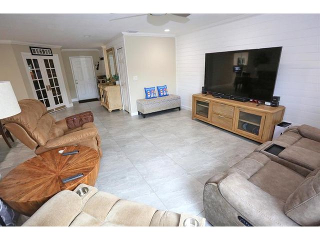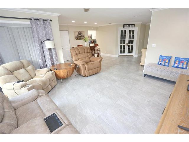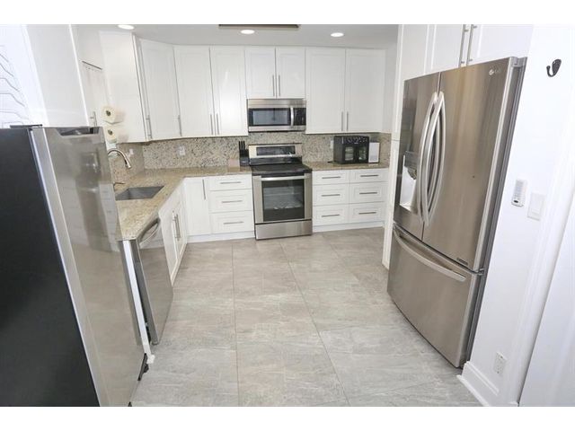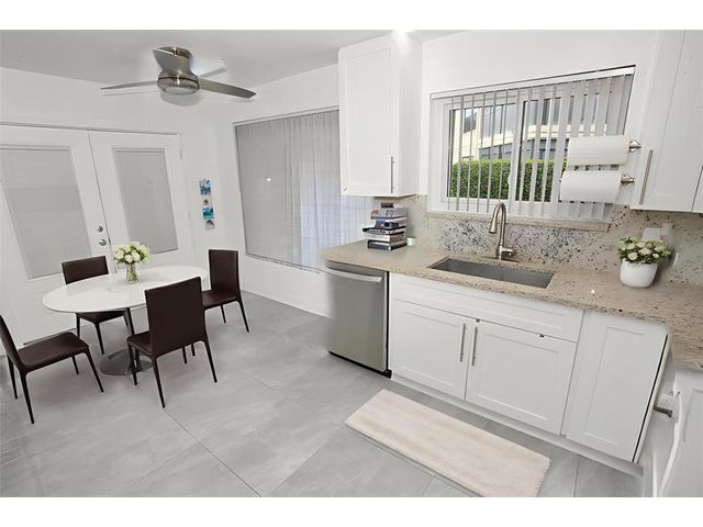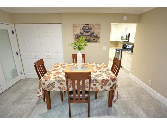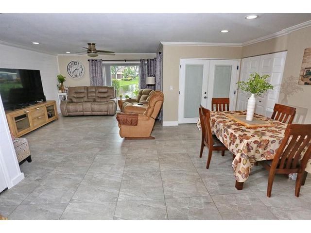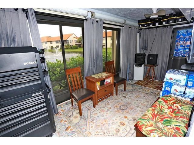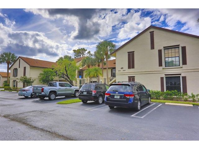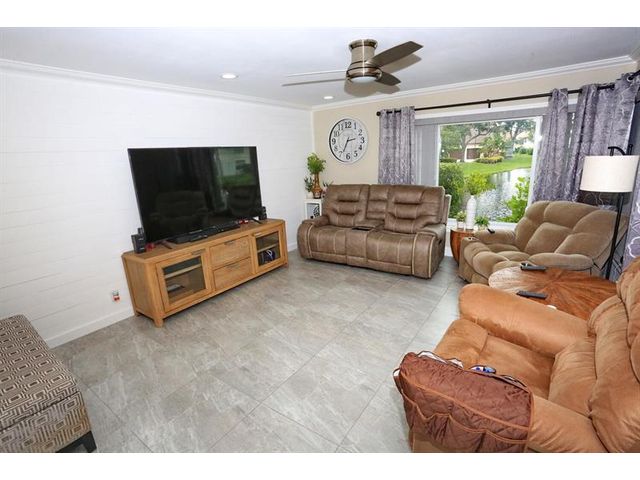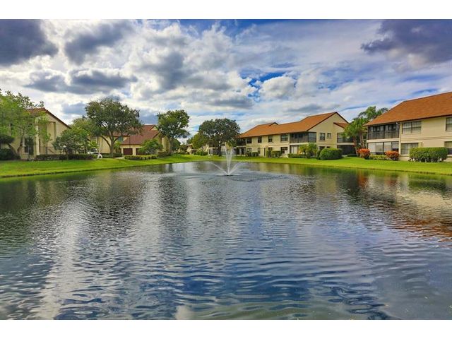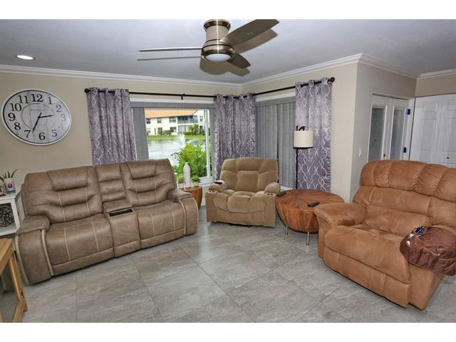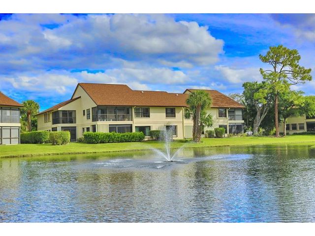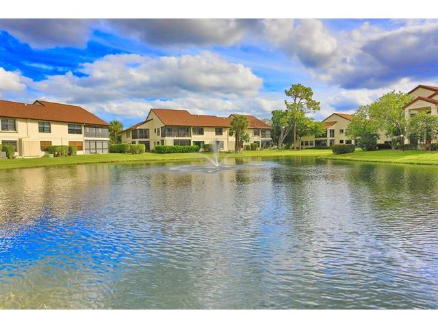 WELCOME HOME! Beautifully updated 1st-floor 55+ condo offering peaceful Florida living with amazing water & fountain views! This spacious 3-bedroom (one used as a den) home features a remodeled kitchen & baths, tile in main living areas and den, carpet in bedrooms. Enjoy the enclosed patio perfect for relaxing or entertaining. Crown molding, recessed lighting, shiplap accents, newer roof, updated windows, and accordion hurricane shutters add style and peace of mind. Plenty of storage throughout. Experience an active or social country club lifestyle with fantastic amenities—without the high fees! Close to shopping and easy access to Florida's Turnpike. One small pet up to 25lbs permitted. Rentals permitted after 2 years of ownership. It's a must see. STAND ALONE FREEZER DOES NOT CONVEY