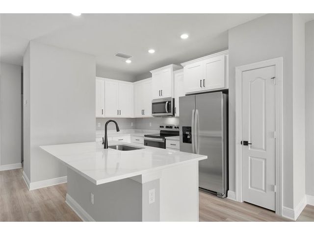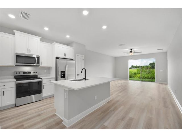 Ask about our incentives, builder-paid closing costs, and more! The Patricio plan perfectly blends style and functionality. This inviting one-story home features a welcoming foyer and a spacious, open layout designed for comfort. The expansive family room is ideal for relaxing, while the chef-inspired kitchen, with a large island and breakfast bar, makes entertaining a breeze. The generous master retreat and two additional bedrooms offer plenty of space for the whole family. Enjoy top upgrades like granite countertops, stainless steel Whirlpool® appliances, walk-in closets, and front yard landscaping. All of this in the beautiful Celebration Pointe community, complete with fantastic amenities!