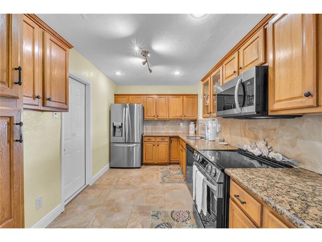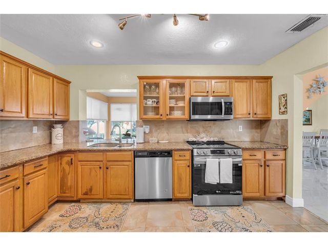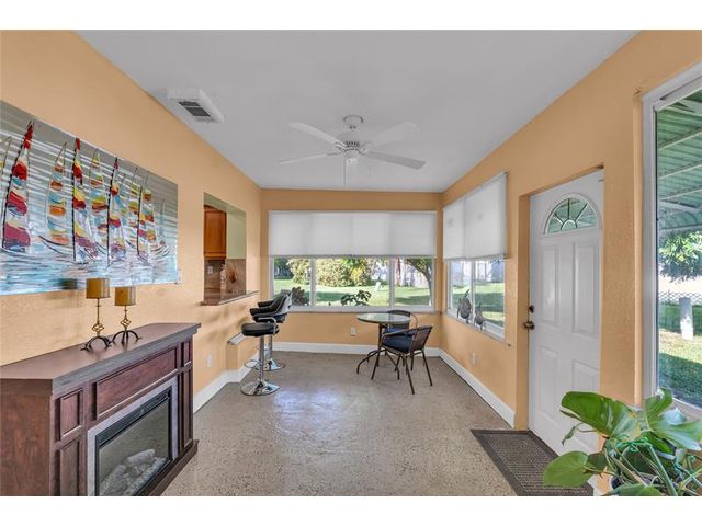 Charming 2-bedroom, 2-bath home with a 1-car garage located on a quiet cul-de-sac. Relax on the inviting front porch or in the bright Florida room. This home features hurricane impact windows, tile floors in the main living areas, and laminate flooring in the bedrooms. The kitchen is beautifully updated with granite countertops, wood cabinetry, and stainless steel appliances. Well appointed bedrooms. With a very low HOA, this property offers comfort, style, and affordability, perfect for year round living or a seasonal retreat. Move-in ready and conveniently located near shopping, dining, and major highways. 2 Clubhouses, free golf, Roof 2019, A/C 2014, W/H 2024. HOA includes Water, Lawn, Exterior paint and Roof pressure wash.