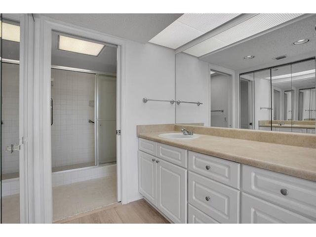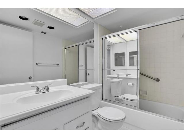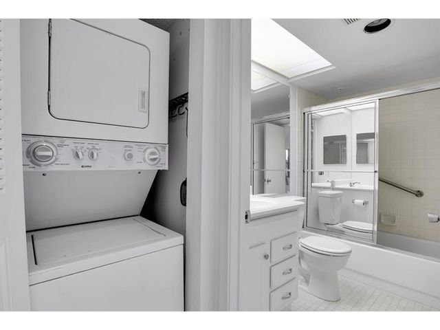 This exceptional apartment features modern living with a striking eastern exposure that fills the space with natural light. The gourmet kitchen integrates seamlessly with the living area, perfect for entertaining and relaxation. The serene bedroom offers ample closet space and a spa-inspired bathroom with newer vanities in both bathrooms. The primary bathroom includes a shower, while the guest bathroom has a tub-and-shower combination. An in-unit washer and dryer adds convenience. The living and dining areas are tiled, and bedrooms have vinyl flooring. Recently painted, the apartment also boasts a new air conditioning unit 2025 and water heater installed 2015. Enjoy panoramic water views from the glass-enclosed patio with pull-down shades. SEE ALL PHOTOS THEN SEE FOR YOURSELF!