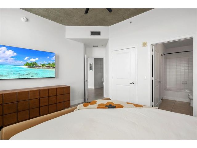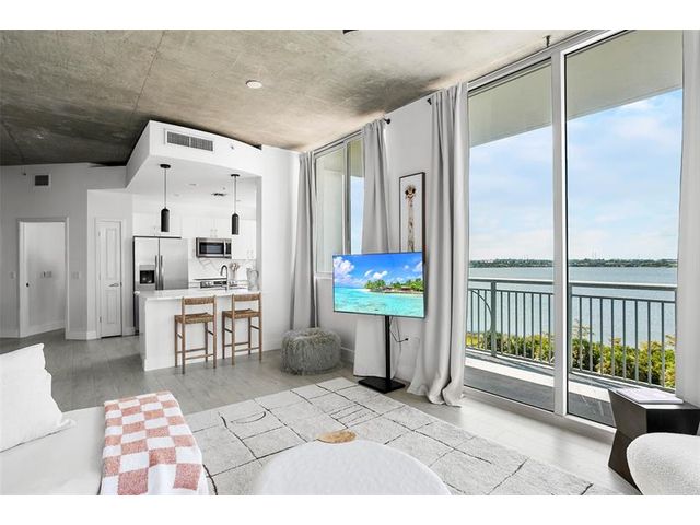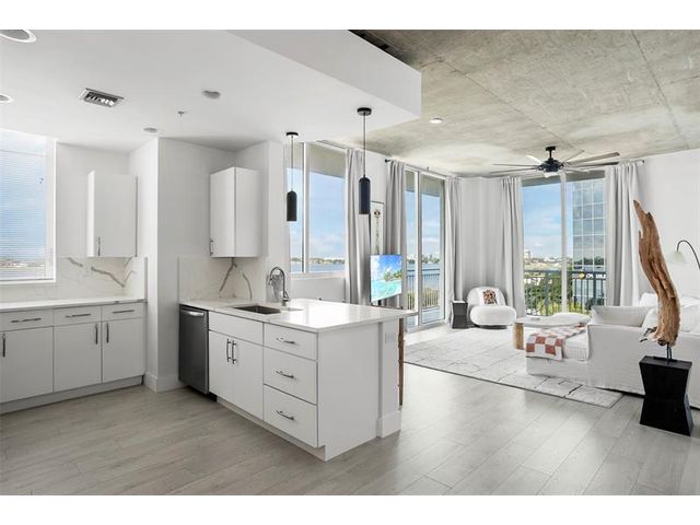Experience amazing waterfront, loft–style living at The Edge, located in the heart of Downtown West Palm Beach. This spacious residence with 2-bedroom, 2-bath plus a flex space is on the 5th floor and offers stunning west-facing views of Clear Lake from every room. Recently upgraded with new countertops, flooring, and appliances—including refrigerator, dishwasher, microwave, washer, and dryer—this home blends modern comfort with refined design. Attractively furnished with high-end pieces from Fendi Casa, Lulu and Georgia, Crate & Barrel, Zara Home, and more, every detail exudes style and sophistication. The building features resort-style amenities including a lakeside pool, hot tub, BBQ area, fitness center overlooking the water, pool table, and more.