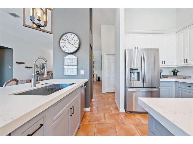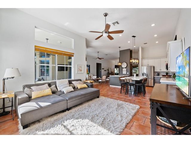 Beautiful 4BR + den/office and 3.5BA single-story home, with a pool and serene lake views. Enjoy a private backyard oasis with a modern pool featuring a beach entry perfect for relaxing or entertaining. The open-concept, remodeled kitchen with quartz island and stainless-steel appliances. Updated cabana bath and new A/C units (2024 & 2025). Spacious three-way split floor plan with 12-ft ceilings and a tranquil primary suite with a sitting area. Tile in living areas and wood floors in bedrooms. Savanna offers resort-style amenities, a clubhouse, pools, sports fields, and proximity to Town Center and A-rated schools.
