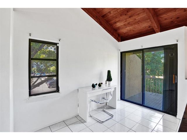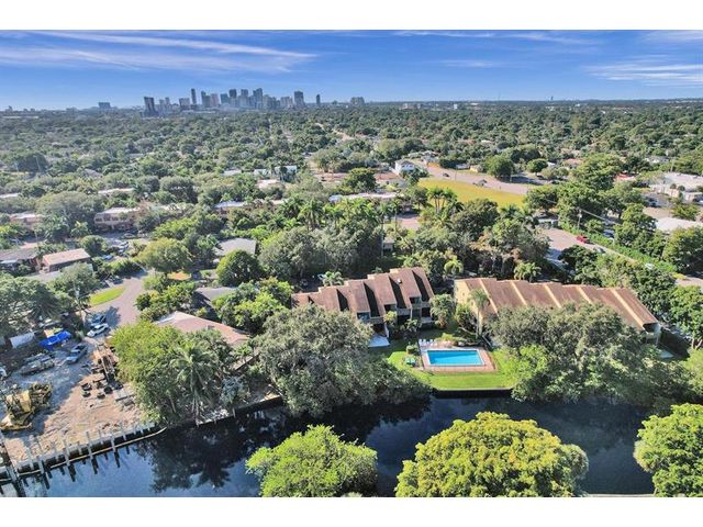 Discover East Fort Lauderdales beautiful 2-bedroom, 2.5-bath corner townhome in the boutique community of Middle River Townhomes of just 10 residences. This light-filled home features soaring vaulted wood ceilings, tile flooring throughout the first floor, and a spacious eat-in kitchen with Granite looking countertops, stainless steel appliances, and a dedicated laundry room. The flexible open space off the living area is ideal for a small office or can be designed as a custom bar, the options are limitless! The elevated dining area overlooks the tranquil flow of the River. The primary suite offers comfort and space with an additional living area, a custom oversized closet & private balcony! Corner unit with new roof, freshly painted exterior, and ready for you.