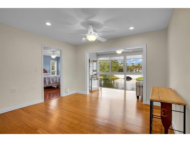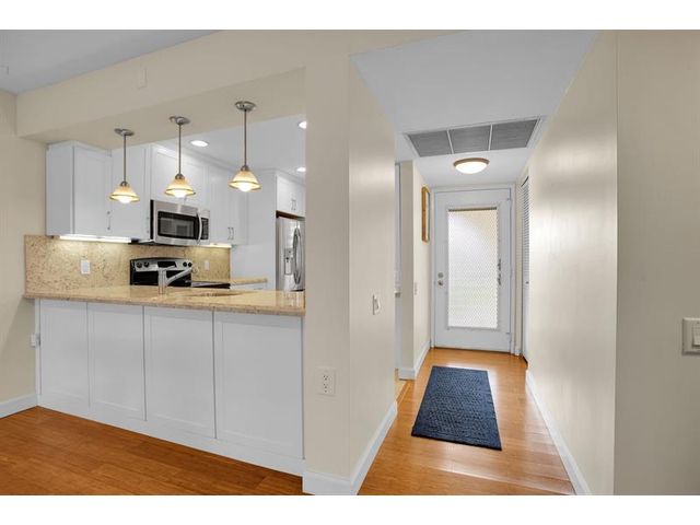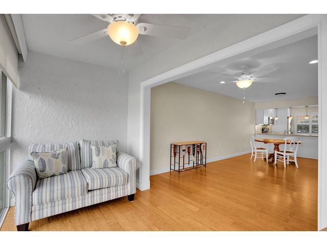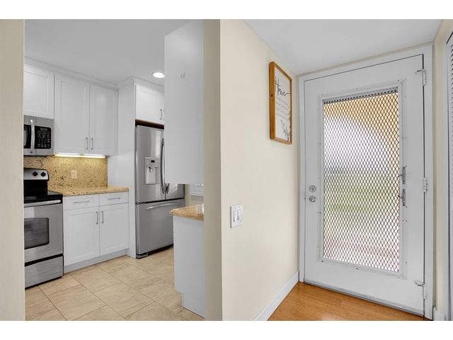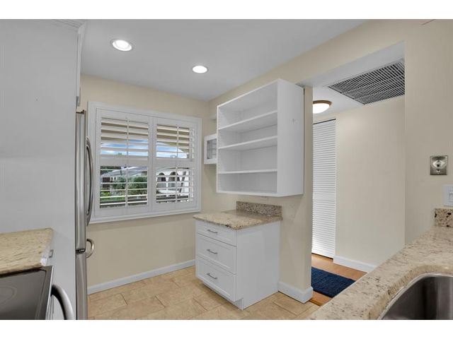 CORNER This property features all high-impact windows and a glass-enclosed patio that opens to the living area. Surrounded by water on every side, the patio faces east. The interior has been remodeled, with no carpet; laminate /vinyl flooring throughout. The kitchen and living room boast granite countertops and recessed lighting (hi-hats), SS Appliances, while all windows are fitted with plantation shutters. Be sure to see all the photos, then come see it for yourself!