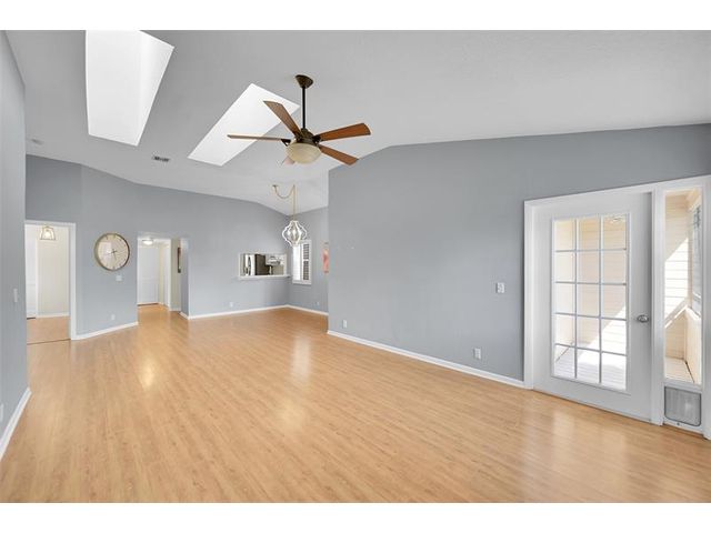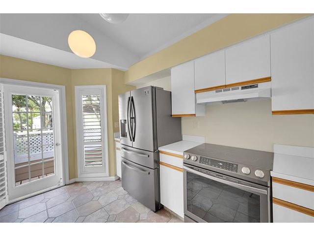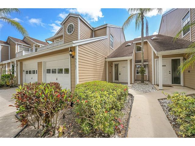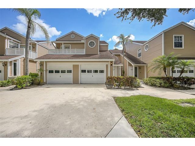 Lovely 2 bedroom 2 bath townhome in the centrally located community of Fairfield at Boca. First level has a one car garage and spacious storage closet. Second level has a living/dining area with vaulted ceiling and skylight affording a light filled and expansive living space. Screened in balcony with water view is off the living room. Primary bedroom with vaulted ceiling and en suite bath with double vanity, shower with porthole window, roman tub and large walk-in closet. The kitchen has newer appliances and pass-through to dining area and access to a second balcony, perfect for a BBQ grill. Guest bedroom, bath and full-size washer and dryer are also on the second level. Enjoy tennis, community pool with spa, guest parking and much more. Walk to shopping, restaurants and Town Center mall.