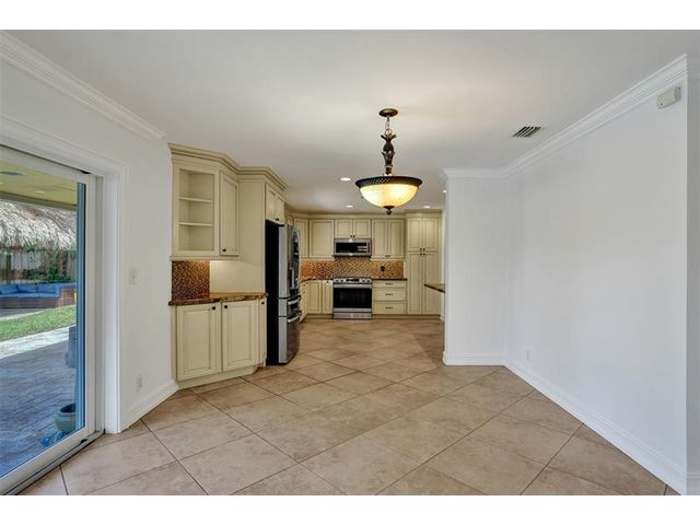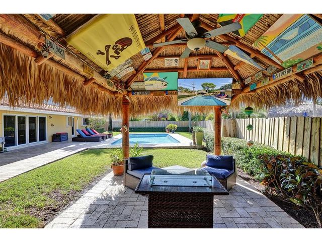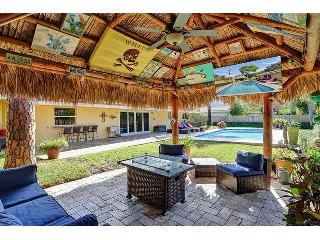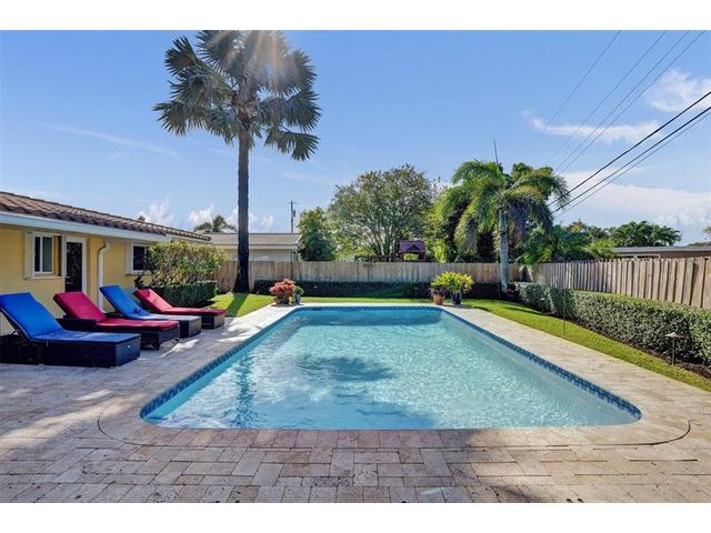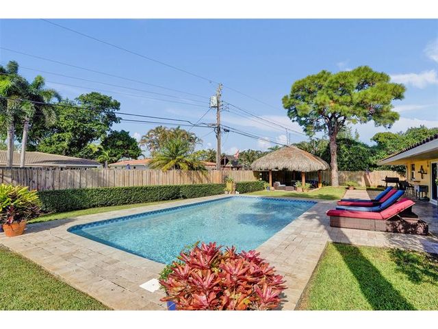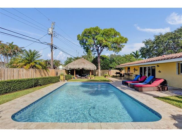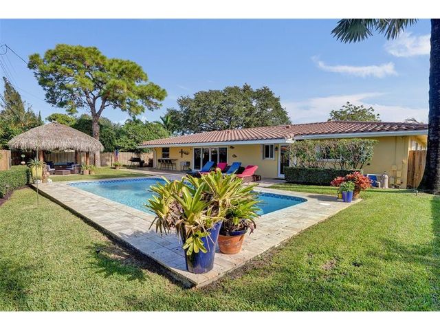 Experience the relaxed South Florida lifestyle in this private tropical retreat located in the heart of Coral Ridge Isles. This 3-beds, 2.5-bth home with a flexible convertible 4th bed designed for comfort, and easy living. The gourmet kitchen features granite countertops, a copper sink, stainless-steel appliances, and a wine bar that opens to a dining and family area perfect for entertaining. Step outside and unwind by the refinished Diamond Brite pool under the tiki hut, complete with a built-in grilling area and lush landscaping. Nestled in one of Fort Lauderdale’s most desirable neighborhoods, enjoy quiet, tree-lined streets just minutes from the beach, top dining and shopping, Holy Cross Hospital, and private schools like Pine Crest, Westminster Academy, and St. Mark’s.