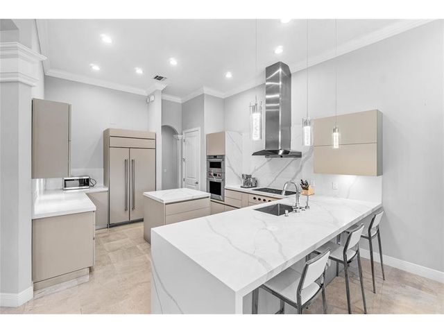 Elegant 4BR/3.5BA home plus office & den in the prestigious Azura community. Enjoy serene preserve views, two new high-end AC systems (2025), and a remodeled kitchen (2019) with Italian cabinetry, quartz countertops & Wolf/Sub-Zero appliances. Features include marble floors, high ceilings, crown moldings, custom lighting, built-in closets & impact windows. Whole-house generator (2021). Cabana bath leads to a private saltwater pool with fountains, water features, outdoor kitchen & spacious patio. Top-rated school district.