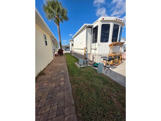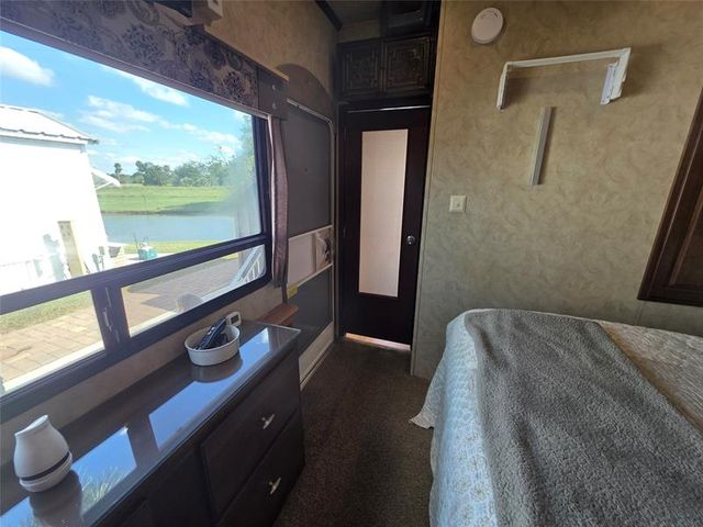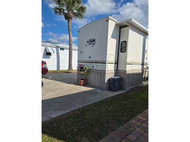 Waterfront home has the affordable ambiance you want in Waterfront Living ! Enjoy Florida living in this premium 2014 Forest River Cedar Creek Cottage RV, perfectly positioned on a canal-front lot in a 55+ friendly gated community. Provides a comfortable full-time or seasonal living — a spacious king bedroom, stackable washer & dryer, a fully equipped kitchen with Island, dishwasher, central vacuum system-Media Center, Lots of Cabinets & Storage. Your paver brick patio overlooks the tranquil canal & landscape. The lot features an electrified shed, paver-trimmed concrete pad, and easy upkeep. Community Amenities Include: Heated saltwater pool-Clubhouse-Pickleball courts-shuffleboard-cornhole-pool hall-Dog Parks. Paved Streets, Marina, boat ramp & Docks with access to Lake 0 & Much more