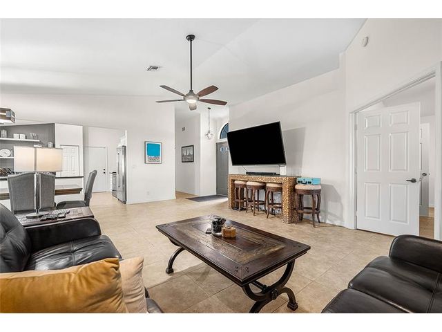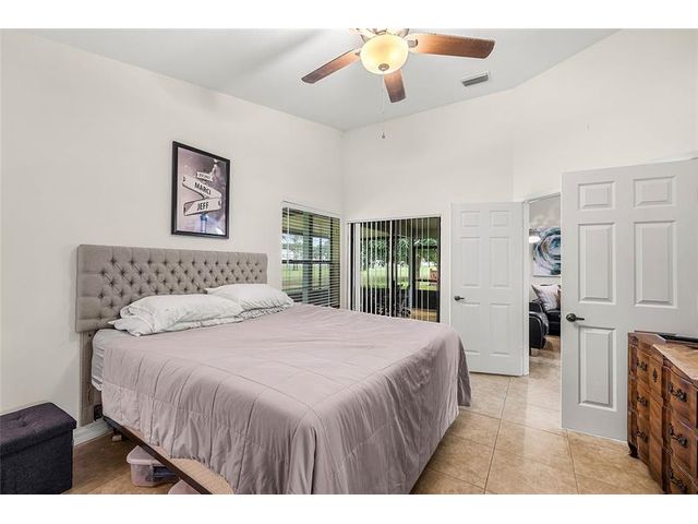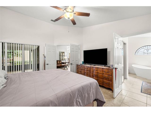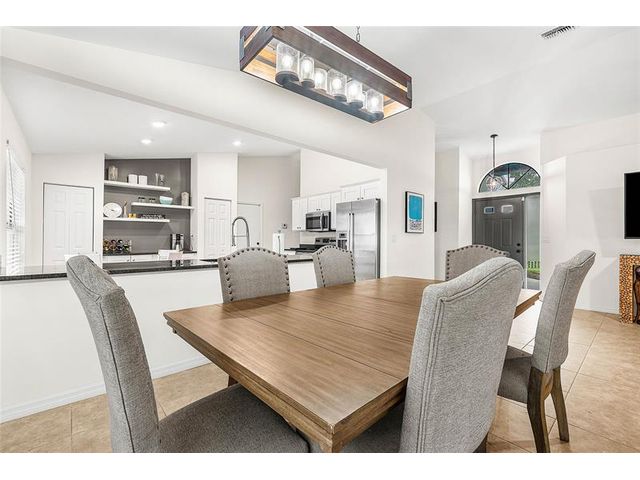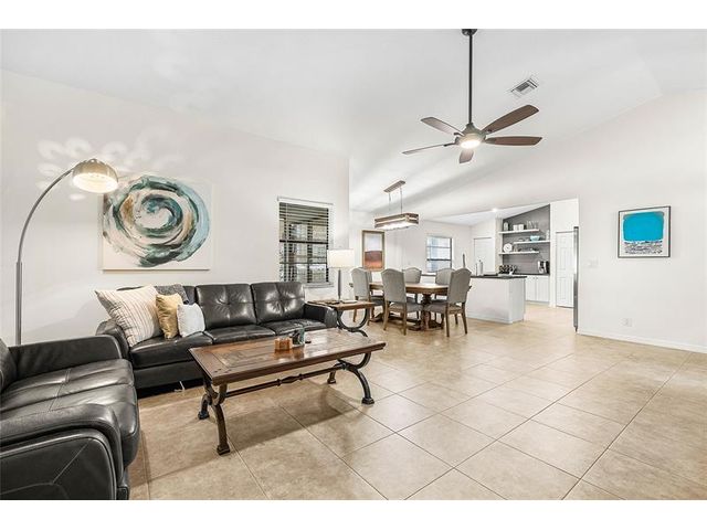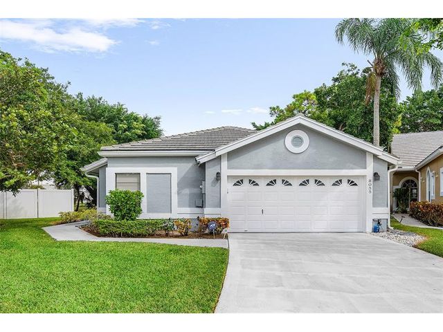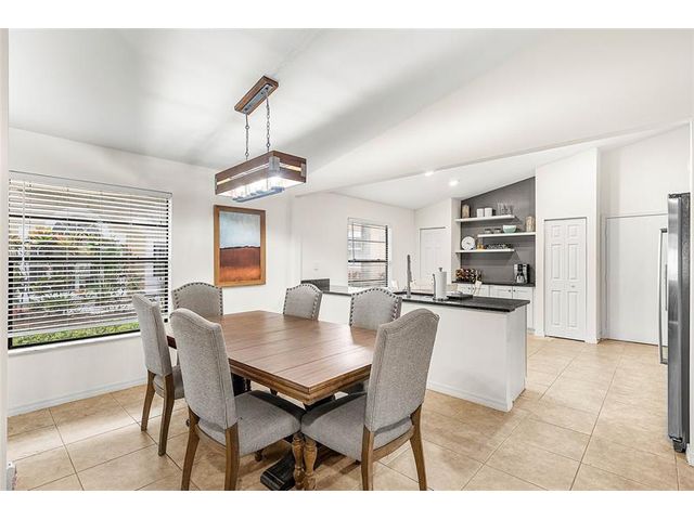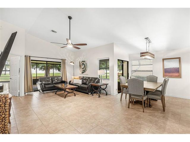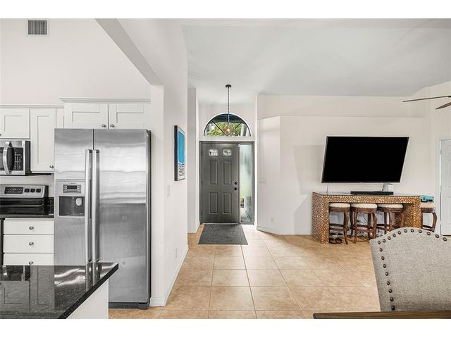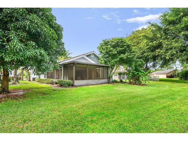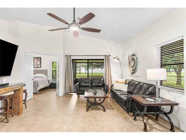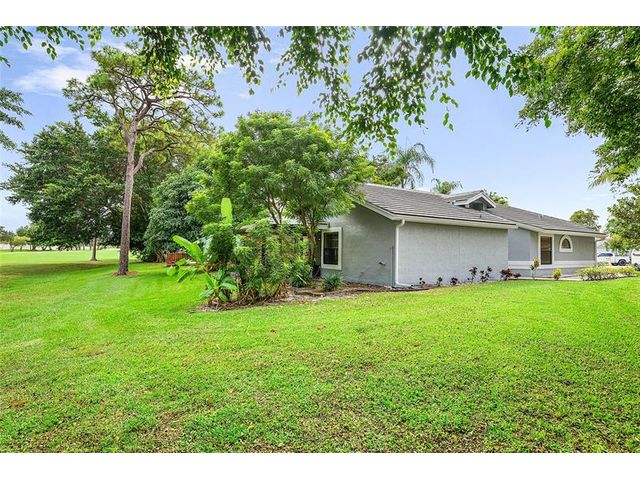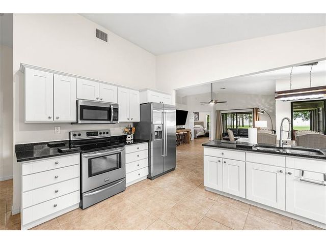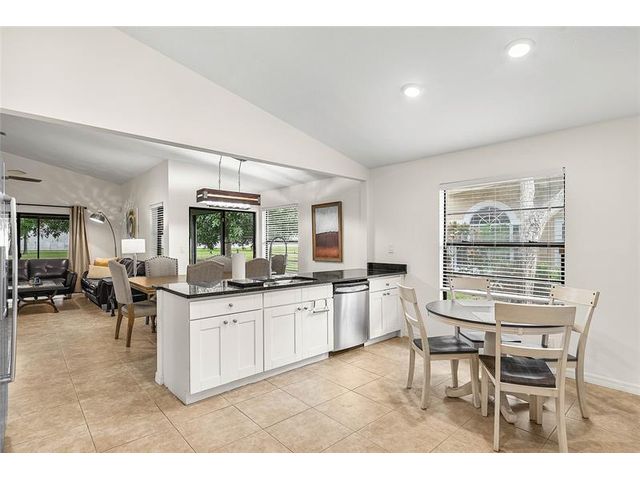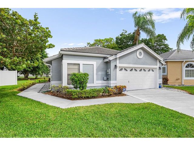 Welcome to this beautifully maintained home tucked on a cul-de-sac within a manned-gated community. The exterior was freshly painted in 2025 and boasts golf course views. Thoughtfully updated and move-in ready, this single-story residence pairs timeless design with modern comfort. The 2023-updated kitchen features a built-in bar, double pantries, and sleek finishes, perfect for entertaining. The primary suite includes a renovated bathroom (2023), while large windows capture golf course views that create a serene backdrop - without the buy-in! Additional highlights include new gutters (2022), water heater (2021), A/C (2015), roof (2013), interior paint (2023). Enjoy the best of Florida living in a secure, gated setting close to top-rated schools, shopping, dining, and recreation