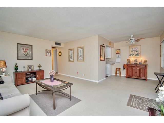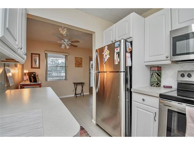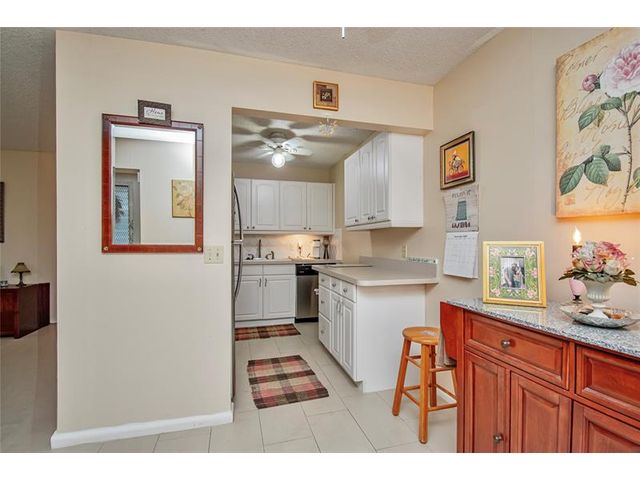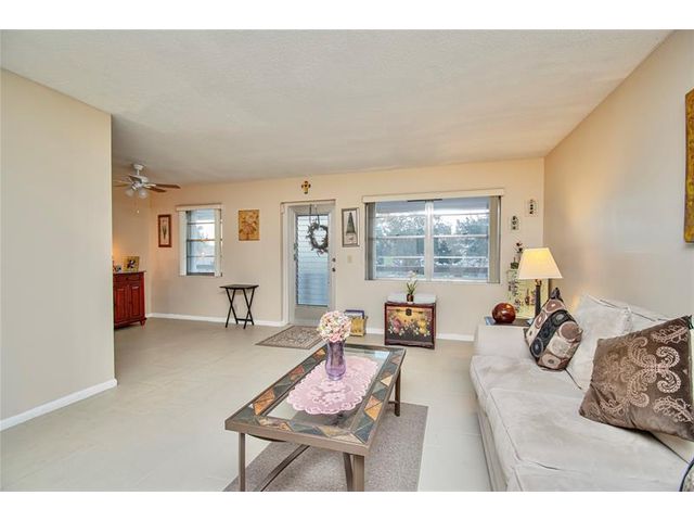 Discover this immaculate 2-bedroom condo in the highly sought-after gated community of Century Village. Enjoy resort-style amenities, including a massive clubhouse with a ballroom and theater, indoor & outdoor pools, tennis, shuffleboard, a state-of-the-art fitness center, sailing, and billiards room. Peace of mind is ensured with 24-hour security guards, along with all amenities included in the HOA. This well-maintained building received a new roof in 2022, and has no special assesments. The lovely unit features an updated kitchen with stainless steel appliances, white shaker cabinets, and a tile backsplash. Enjoy your morning coffee in the enclosed Florida Room with impact windows!) or secure your home with front accordion hurricane shutters. 2021 AC. Call listing agent now for a tour!