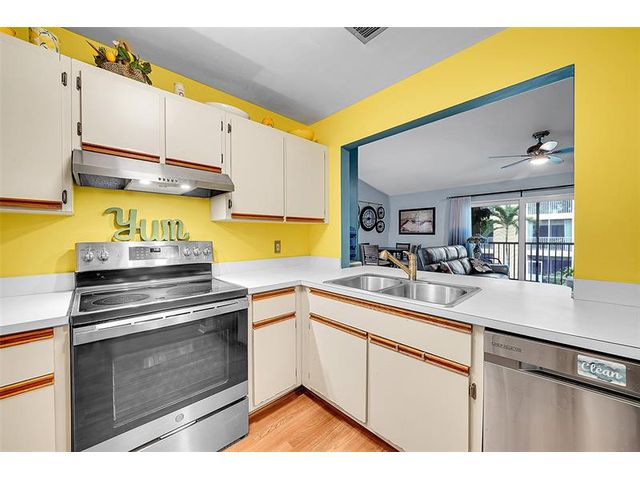 Beach vibes just 1.5 miles away! This sunny 2/2 condo gives you pool views from the bedrooms, morning coffee on your screened balcony, and peace of mind with an impact slider. Love color? The cheerful kitchen and open layout shine with personality. Washer/dryer in unit, Roman tub for bubble baths, and bonus storage closet. Community perks include a pool and clubhouse. Pet-friendly and east of US1! Two assigned parking spaces included along with plenty of guest parking. No rentals 1st year. Easy breezy Dania Beach living starts here!