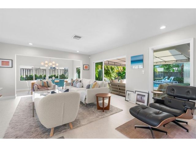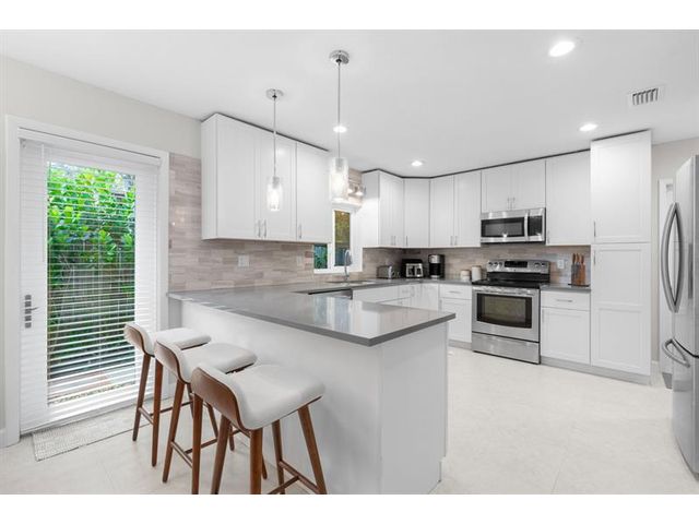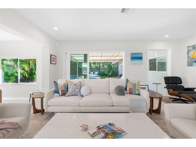 Beautifully Updated 3BR/2BA Coral Gardens Home, Just Minutes From The Beach, Dining & Shops. Light-Filled 1,820 SF Interior Offers Garden & Pool Views From Every Room. Features Tile Floors, Eat-In Kitchen With White Wood Cabinets, Quartz Counters & Stainless Appliances. Primary Suite Opens To Pool With Custom Walk-In Closet & Ensuite Bath. Spacious Guest Bedrooms Share Updated Bath. Ample Lighting in Sun Room. Living Room Opens To Covered Paver Patio And Private Tropical Yard With Heated/Chilled Waterfall Pool. Impact Windows/Doors, Barrel Tile Roof (2009), Trane AC (2017) W/New Ducts & Ecobee Thermostat, New Compressor (2020). One-Car Garage With Impact Door, Circular Drive, Shed, Ring Doorbell & Security Cameras. Immaculate Move-In Ready Home On 7,919 SF Lot!