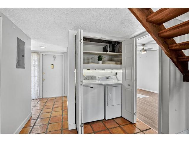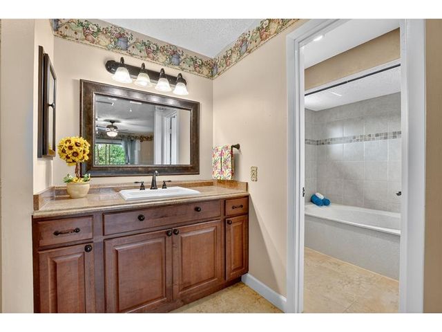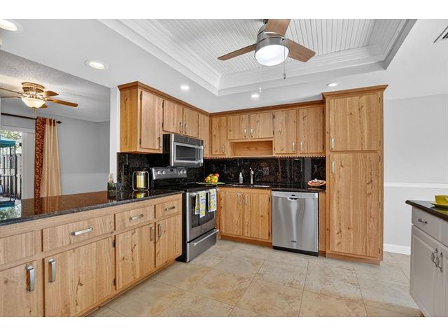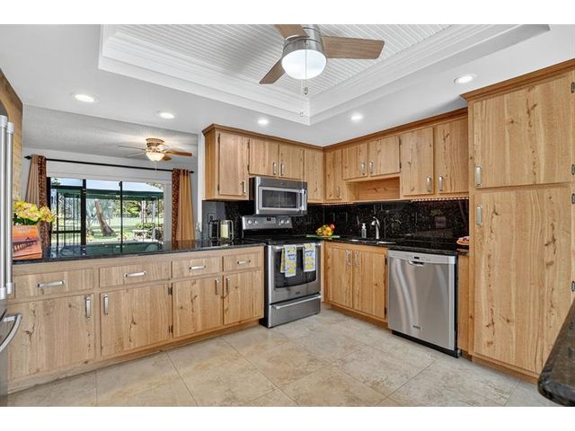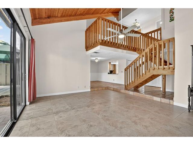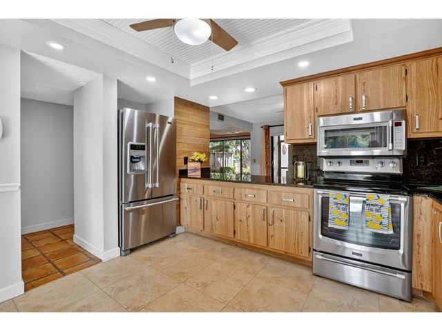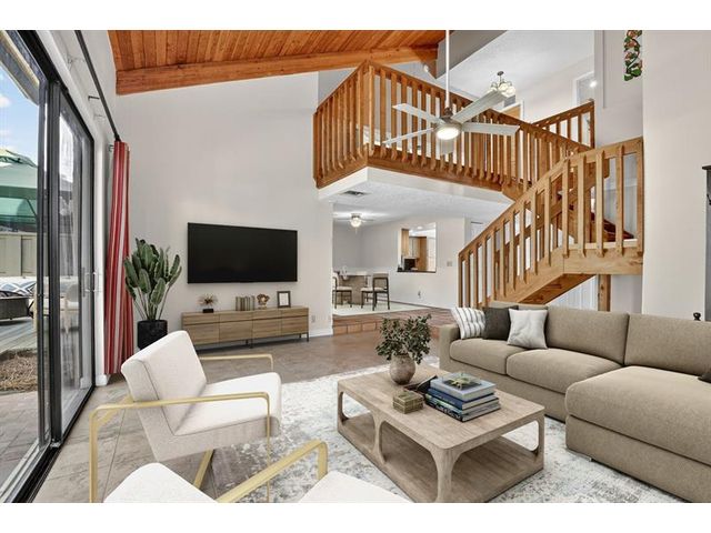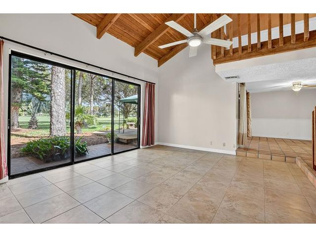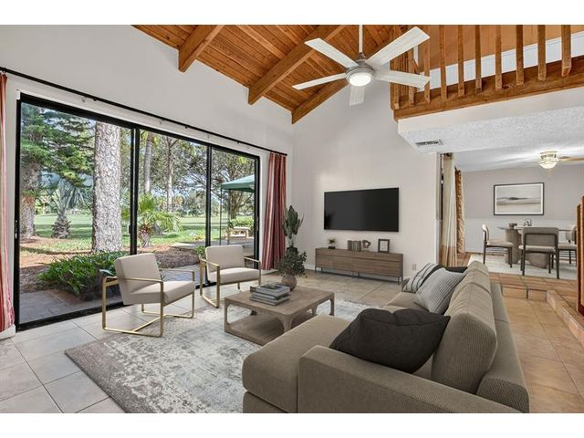Senstional 3/2.5 TH w/ 1,800+SF. Enjoy GOLF COURSE w/ expansive views of intersecting fairways! Enter into wide-open LA w/ 20' soaring ceiling featuring wood beam finish. HUGE FR/LR w/ neutral tile has a triple slider to patio-perfect for parties! DR w/ BIG pass thru. Entertaining is a breeze in your great kitchen w/ granite counters & backsplash. Newer Maytag S/S appliances, tons of 30" cabinets + extra island! Gorgeous shiplap accent wall has IMPACT stider to fenced courtyard. Guest BR on ground floor! Beautiful rich laminate floors upstairs. Fall in love in the primary BR w/ scr balcony w/ views. UPDATED pr bath has counter ht vanity w/ granite counter. Huge tub to soak away your worries. Walk in closet-perf for fashion fan. BR w/ walk in closet. Savor coffee on the BIG DECK! LOW HOA!