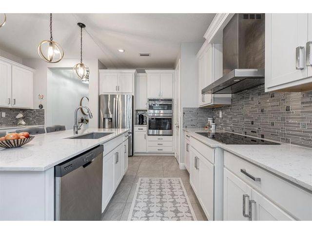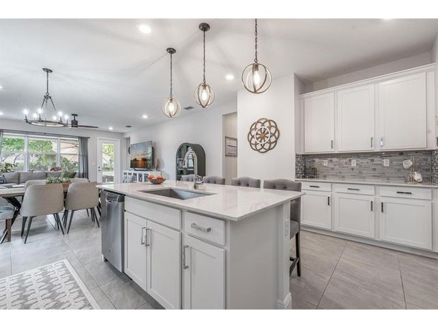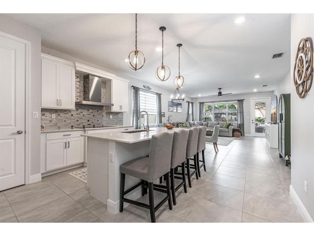 Home for the Holidays! Stunning, Scenic Winding Waterviews are YOURS from this Pitoresco Floorplan w/Low Country Elevation in Gorgeous, Gated VELEIROS! 2/2+ Den(Convertible to 3rd Bdrm). 2-Car Garage. Lush Foliage Lines Front Porch. Enter to Foyer & Den, Offering a Preview of High-End Window Treatments, Fixtures & Finishes to Follow Ahead in Spacious Living-Dining Area. Tile T/O! Open Kitchen Boasts GE Stainless Suite w/Wall Oven, Hood, Quartz Counter & Island, Pantry, Shaker Cabinets, Glass Backsplash. Beyond the Interior, Elegant Metal Fence Lines the Waterfront Yard. Covered Paver Patio & Room for Pool! Owner Suite w/Ensuite Bath, Walk-in Closet w/Built-ins. Wind Back to Guest Rm & Laundry. Impact Windows/Doors. Smart Home System Controls Garage, Front Door, Thermostat. Pet Friendly.
